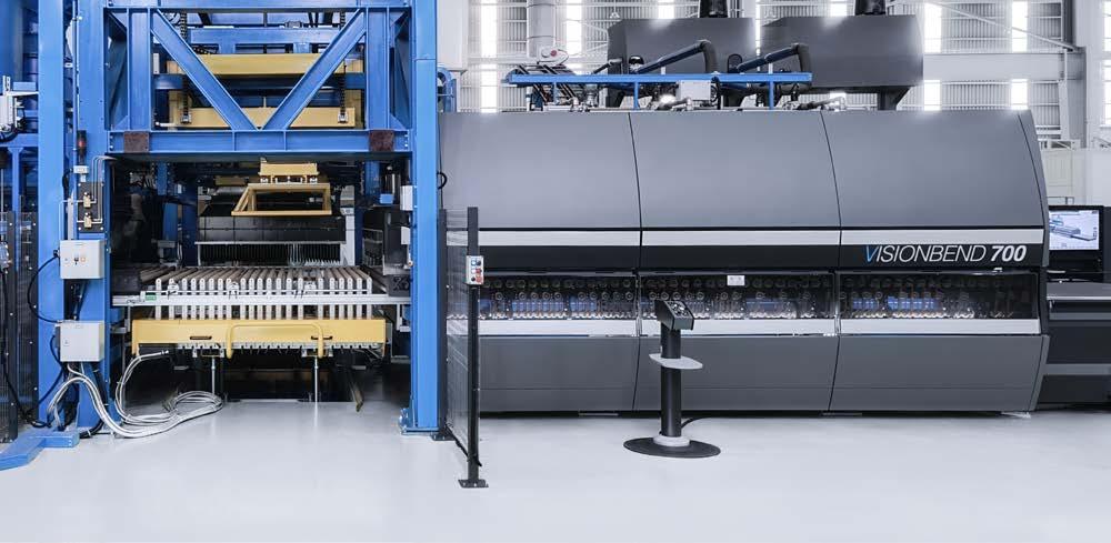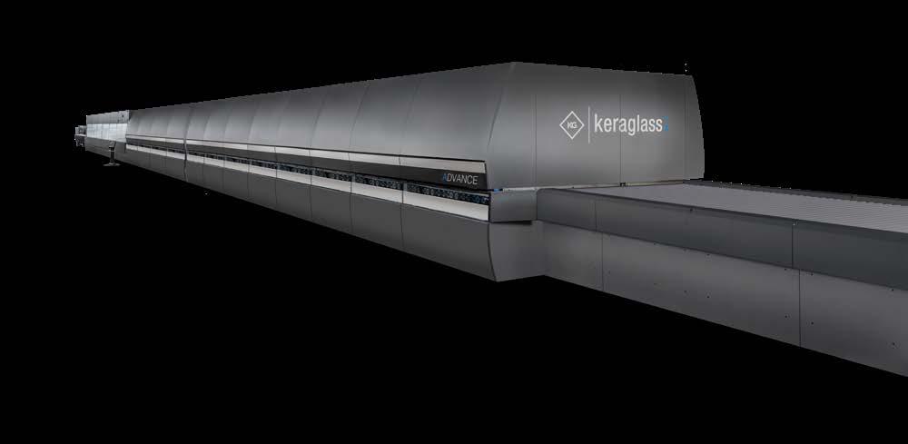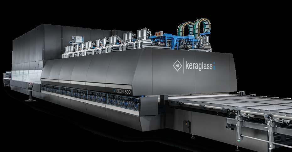Vision Line is a range of oscillating tempering furnaces for flat glass, designed to deliver high performance, reliability and energy efficiency. Suitable for processing standard float and Low-E glass, it allows tempering of glass thicknesses from 2.85 to 19 mm and glass sheets ranging from 1.25 × 2.4 m to 3.35 × 14 m, meeting the production needs of medium and large companies across various application sectors. The range includes different solutions, all based on Keraglass technology: Vision 900 is designed for highcomplexity production, which ensures superior optical quality and maximum efficiency even on latest-generation Low-E glass; Vision 800 offers great process versatility and uniform tempering thanks to an advanced convection system blowing preheated air at 700°C; Vision 700 is the entry-level model, combining simple design, reduced energy consumption and excellent quality results. Vision Line represents a complete and customisable range, internationally proven in the following sectors: architecture, furniture, household appliances, shower doors, automotive and solar.