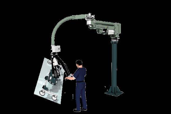 ZERO-G ist eine Schwenkroboter mit ausschließlich pneumatischem Antrieb zum sicheren Handhaben von Glasscheiben, Fenstern und Türen. Anhand der Lastaufnahmemittel kann die Position des zu transportierenden Gegenstands in einem großflächigen Arbeitsbereich ständig überwacht werden. Die ergonomische Gestaltung gewährleistet