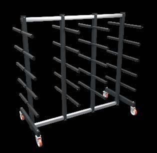 Großer Wagen für den Transport und die Lagerung von Profilstangen während dem Schneidvorgang.