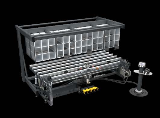 Die Insermatic H2 ist mit einem größeren Beschlagmagazin mit 24 Fächern für Kleinteile und 70 Fächern für die Ablage langer Stäbe ausgerüstet, mit LED-Anzeige, die den Bediener durch die richtige Montagereihenfolge führt. Der Arbeitstisch wird durch eine CNC-Schneidmaschine für das Zuschneiden der Beschläge im konstanten oder variablen Schrittbetrieb und einem Sammelkasten der Schnittabfälle vervollständigt. Ein Fördersystem führt den automatischen Transfer des Flügels vom Montagetisch auf den für das automatische Aufschrauben vorgesehenen Tisch aus.
