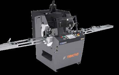 CNC-Bearbeitungszentrum mit 4 Achsen und verfahrbarem Portal für Fräs- und Bohrbearbeitungen sowie Gewindeschneiden zwischen -90° und +90° an Stäben oder Stücken aus Aluminium, PVC und Stahl. Die neue Schutzkabine wurde entwickelt, um maximale Funktionalität, Zugänglichkeit, Schallschutz und Helligkeit mit den Anforderungen an Sicherheit und Ergonomie zu verbinden. Mit der HochleistungsFrässpindel (11 kW) können auch unter schweren Belastungen Bearbeitungen mit ausgezeichneten Ergebnissen durchgeführt werden. Das in das verfahrbare Portal integrierte Werkzeugmagazin mit 13 Plätzen verfügt über zwei spezifische Positionen für ein Sägeblatt mit einem Durchmesser von max. 250 mm und einen Winkelkopf. TKE 954F funktioniert in zwei Betriebsarten: Einzonenbetrieb für die Bearbeitung ganzer Stangen mit einer maximalen Länge von 7 m in einem einzigen Arbeitsbereich; Pendelbetrieb für das Anfertigen mehrerer Stücke in beiden Arbeitsbereichen. Auslegung für Industry 4.0.