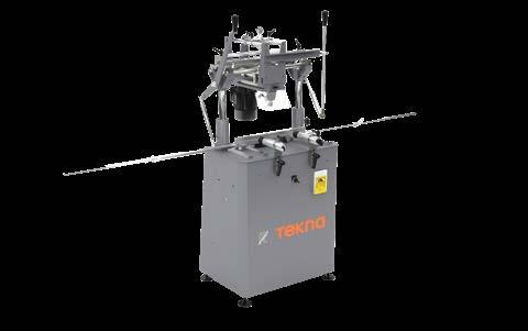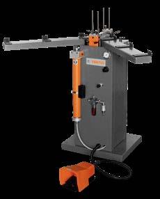 Pantógrafo de cabeça única de controlo manual com sistema de bloqueio pneumático e movimento de translação da cabeça controlado por uma alavanca indireta. Capacidade de usinar aço de até 2 mm e aço inox (opcional) de até 2 mm. Equipado com um sistema de morsas em um plano com superfície giratória, a máquina usina 4 faces do perfil executando uma rotação dos setores de 270° a 90°.