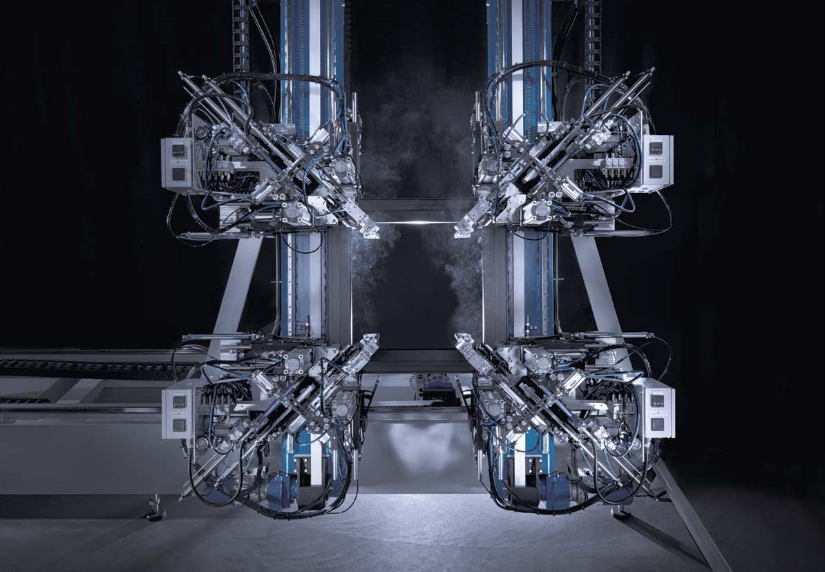 SRS H/RBS to 3-osiowy system do automatycznego ustawiania i przykręcania zawiasów w ramie okiennej. Sterowane osiowo pozycjonowanie ruchomej głowicy precyzyjnie dostosowuje się do geometrii danego elementu, a automatyczny system centrowania i mocowania profili zapewnia powtarzalne wyniki. Wysoka dokładność procesu jest zapewniona dzięki pozycjonowaniu głowic wiercących przy użyciu w zgrzewanych narożnikach wewnętrznych ramy oraz dopasowanemu wkrętakowi z ogranicznikiem głębokości. Dzięki automatycznemu podawaniu i odbieraniu oraz szerokiej gamie opcji system można zintegrować z istniejącymi liniami produkcyjnymi, optymalizując czasy cyklu. Czas obróbki ramy jednoskrzydłowej wynosi około 90 sekund.