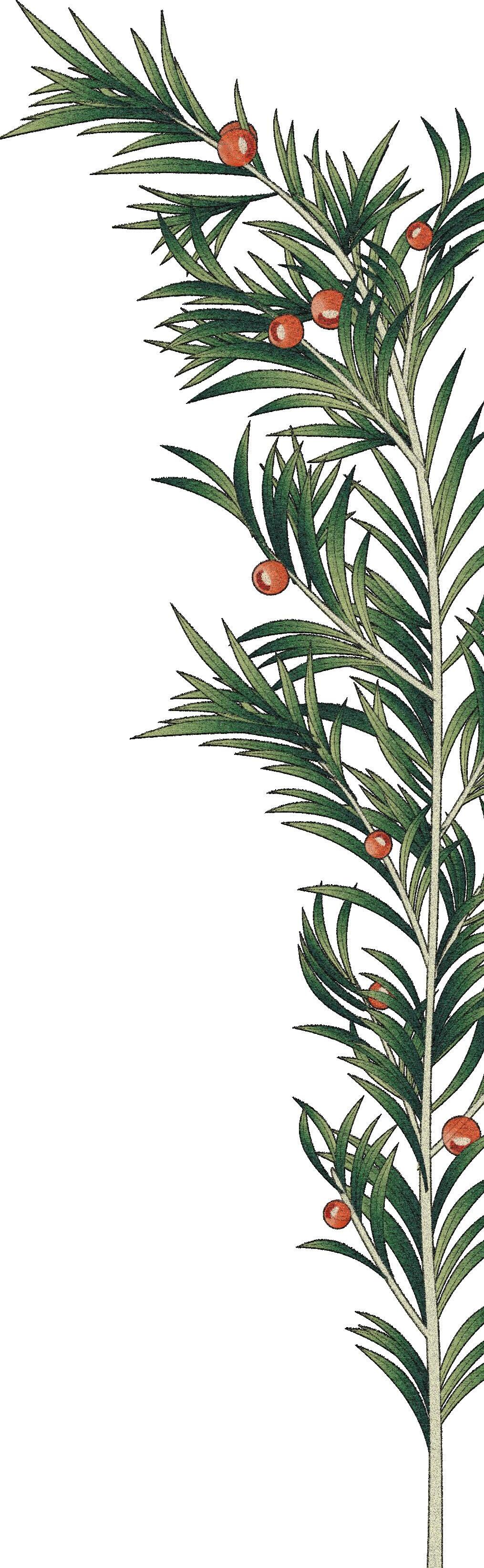 The English yew tree (scientific name: Taxus baccata) is special not only because of its long lifespan and ties to magic, but also for its toxic properties. Its evergreen needles, bark and seed cones are full of poisons. The only part of the yew that is not poisonous is its fleshy red aril, which surrounds the single seed of each cone. This part is edible if you spit out the seed. The wood of the English yew is easy to carve and was the preferred material for crafting early musical instruments such as the lute and the infamous medieval English longbow.