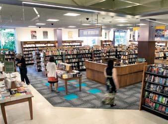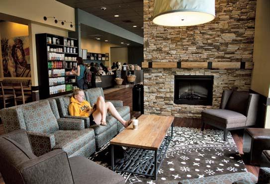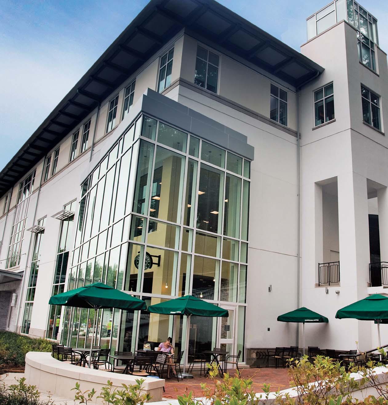 Emory’s new, three-story Oxford Road Building is a place to socialize, sip a Starbucks latte, pick up a best seller at Barnes and Noble, buy a new laptop or a textbook, meet a study group, mingle with potential students, bring the kids for cocoa on a Sunday, get a holiday gift for Mom, or even fi nd a quiet spot to sit and read. Photo by Bryan Meltz.