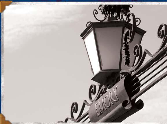 EMORY MAGAZINE (USPS-175420) is published quarterly by Emory Creative Group, 1762 Clifton Road, Plaza 1000, Atlanta, Georgia 30322. Periodicals postage paid at Atlanta, Georgia, and additional mailing offices. POSTMASTER: send address changes to OFFICE OF ALUMNI AND DEVELOPMENT RECORDS, 1762 Clifton Road, Suite 1400, Atlanta, Georgia 30322. Emory Magazine is distributed free to all alumni and to parents of undergraduates, as well as to other friends of the University. Address changes may be sent to the Office of Alumni and Development Records, 1762 Clifton Road, Suite 1400, Atlanta, Georgia 30322 or eurec@ emory.edu. If you are an individual with a disability and wish to acquire this publication in an alternative format, please contact Paige P. Parvin (address above) or call 404.727.7873. No. 111006-1 © 2010, a publication of Emory Creative Group, a department of Communications and Marketing.