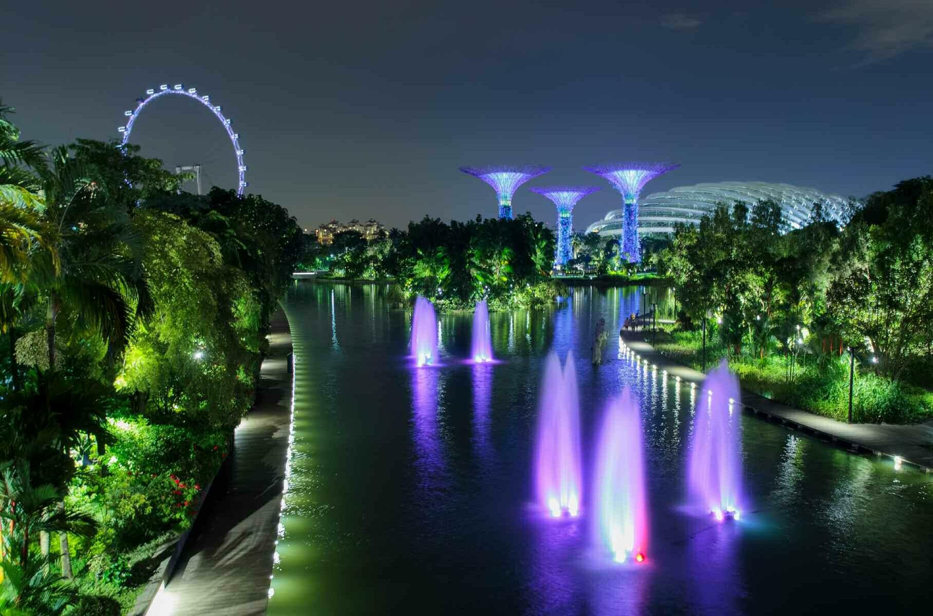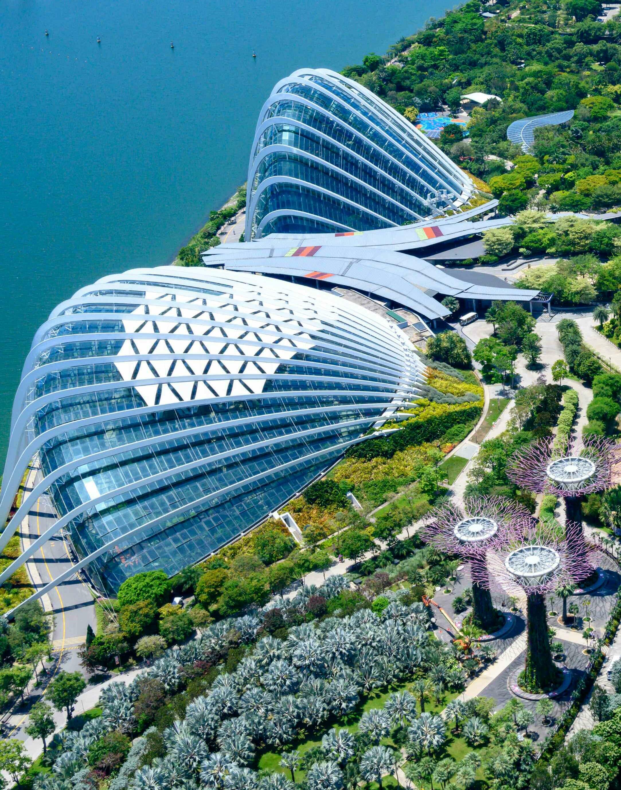 Poi ci sono i simboli super, come gli alberi nel gardens by the Bay, fotovo l t a i c i e a l t i f i no a 5 0 met r i co n u n a co r te cc i a v i ve n te d i piante che di notte prende vita con spettacoli di suoni e luci E c’è i l p rof i l o i nco n fo nd i b i l e d e l f u t u r i s t i co co m p l ess o d i t re to r r i i n vetro e acciaio che sono il Marina bay Sands Hotel con 2 500 ca mere, oltre 60 ristoranti, negozi e boutique di lusso e uno scintil l a n te c a s i nò I l t u t to s o r mo n t ato d a u n a p i at t afo r m a s o s pes a a forma di barca, con una piscina a sfioro e giardini pensili, con vista mozzafiato sulla città.