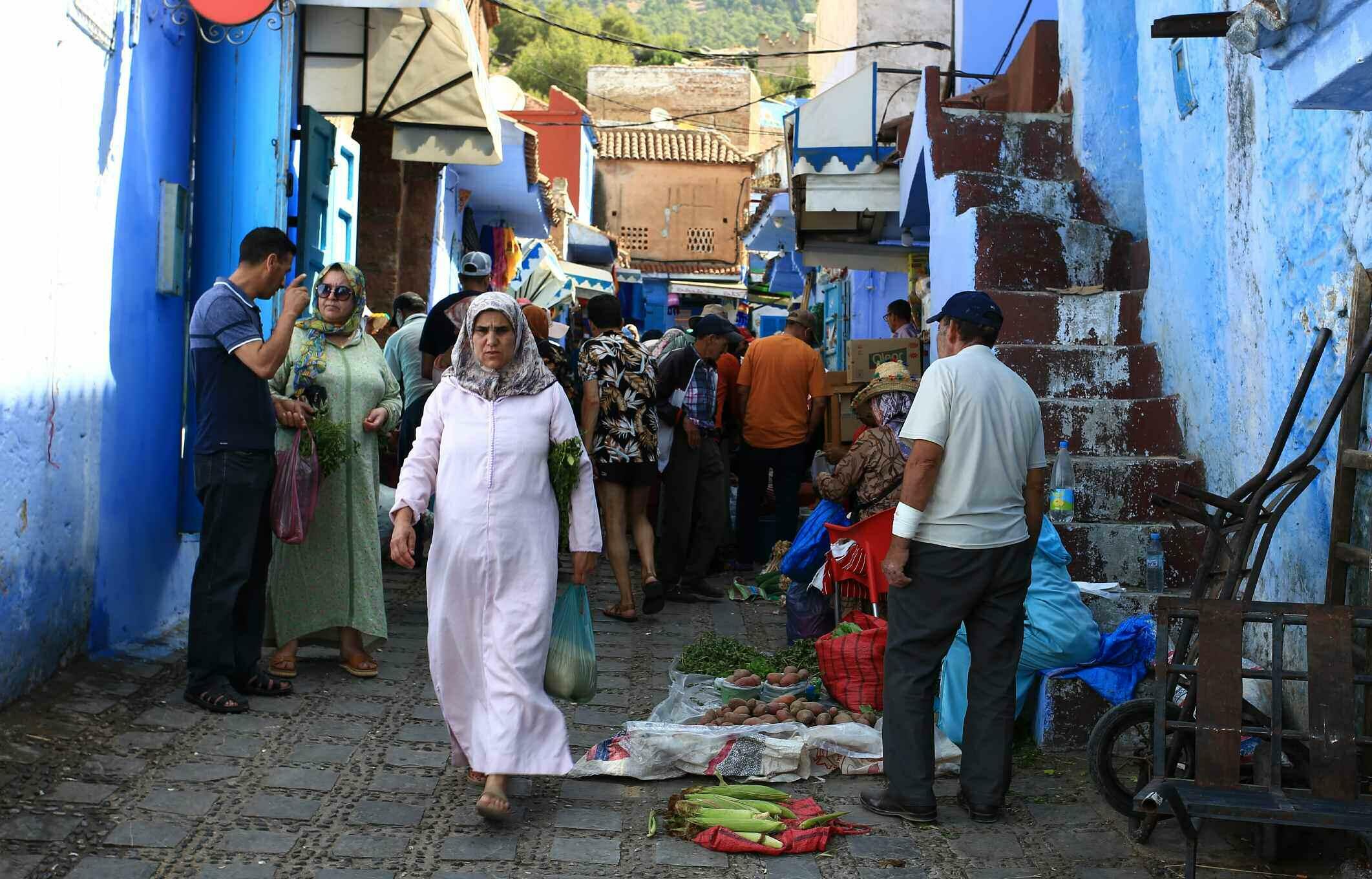 O g g i C h e f c h a o u e n c o n t i n u a a d e s s e r e u n a c i t t à a f f a s c i n a n t e n o n o s t a n t e n e i p e r i o d i d i m a g g i o r a f f l u s s o t u r i s t i c o p a s s e g g i a r e s e n z a m e t a t r a i s u o i q u a r t i e r i r i s u l t i d i f f i c o l t o s o . I n q u e s t o c a s o , p e r r i t r o v a r e l o s p i r i t o d e s c r i t t o d a Fo u c a u l d , n o n r e s t a c h e s a l i r e v e r s o l a M o s c h e a s p a g n o l a a l l ’ a l b a o a l t r a m o n t o g o d e n d o s i q u e i p r i m i o u l t i m i r a g g i d i s o l e c h e « a b b r a c c i a n o l a c i t t à n e l l e l o r o o s c u r i t à , i l l u m i n a i p i n n a c o l i d e i m i n a r e t i » a l c a n t o d e g l i a l t o p a r l a n t i c h e i n t o n a n o i l Ta k b i r : A l l a h a k b a r .