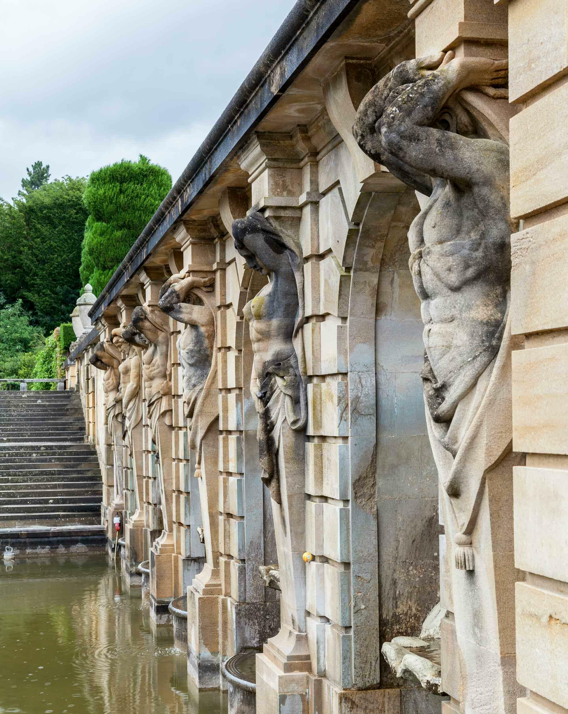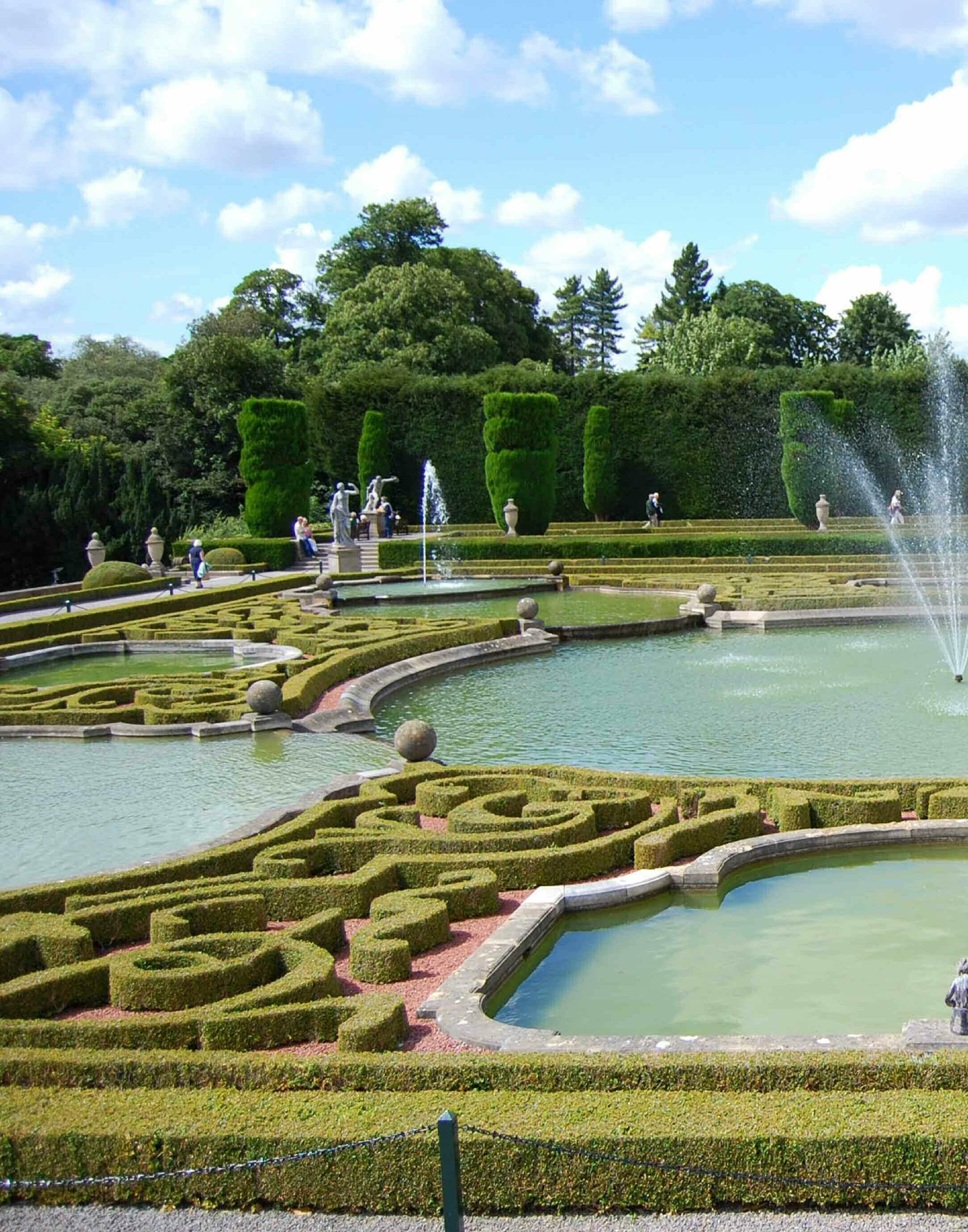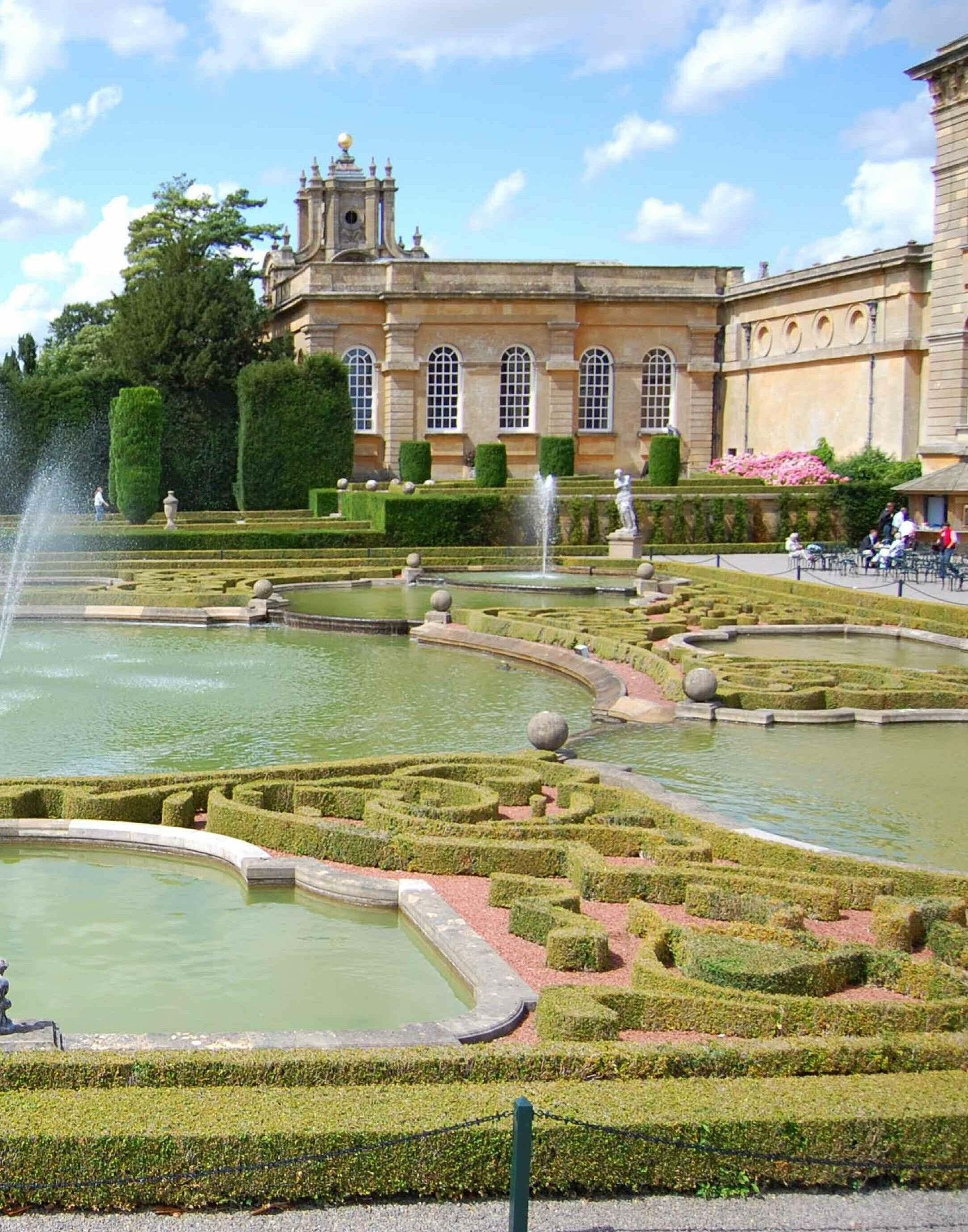 c e l o t “C a p a b i l i t y ” B r o w n , l ’ i d e a t o r e d e l g i a r d i n o a l l ’ i n g l e s e , a m av a e n f a t i z z a r e g l i e l e m e n t i n a t u ra l i d e l p a e s a g g i o . C a n c e l l a n d o l ’ i m p r o n t a d i Va n b u r g h c h e avev a c r e a t o u n g i a r d i n o f o r m a l e a l l a f ra n c e s e , B r o w n h a a r g i n a t o i l f i u m e c h e a t t rave r s av a il parco, creando un lago artificiale con cascate e grandi spazi con e l e m e n t i a r m o n i o s i c o m e g l i a l b e r i i n f o r m a l m e n t e d i s p o s t i p e r i n v o g l i a r e l ’ o c c h i o v e r s o l 'o r i z z o n t e . N e l 1 8 8 2 i l n o n o D u c a d i M a r l b o r o u g h c o m i s s i o n ò a l l ’ a r c h i t e t t o f ra n c e s e A c h i l l e D u c h e n e i l g i a r d i n o a l l ’ i t a l i a n a c o n u n a a ra n c i e ra e a l c e n t r o d e l q u a l e s i