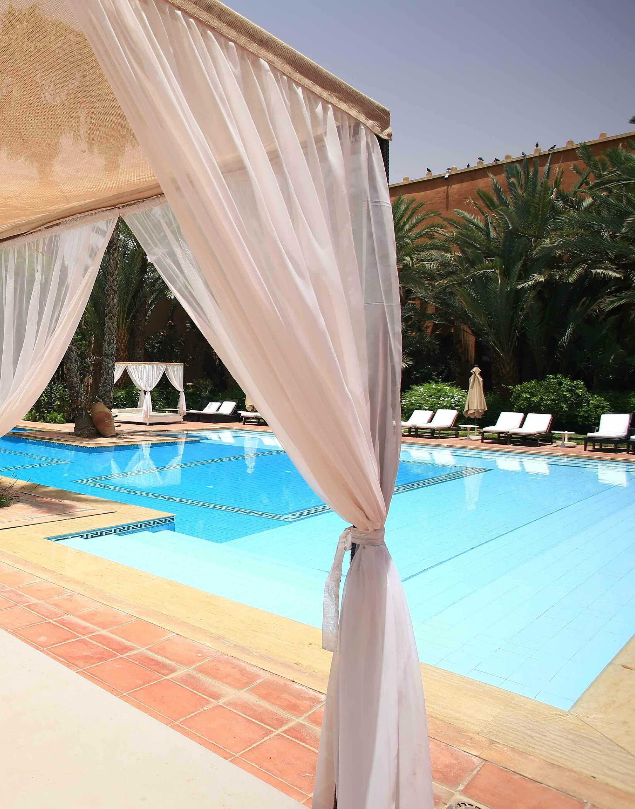del trono di Ramesse, il faraone biblico La scenografia è quella usata nel film "I 10 comandamenti" diretto da Robert Dornhelm (2006). Decine di attori, registi, produttori e sceneggiatori che sono venuti a Ouarzazate a girare scene di film da loro diretti o interpretati ha trovato ospitalità tra le mura de Le Berbère Palace: Angelina Jolie, Monica Bellucci, Cate Blanchett, Robert Redford, Penelope Cruz, Orlando Bloom, Brad Pitt, Martin Scorsese, Ridley Scott, Nicole Kidman, Mick Jagger Gli ospiti dell’hotel hanno anche possibilità di fare numerose escursioni nei dintorni: la famosa kasbah di Aït Benhaddou si trova a 45 minuti d’auto, mentre l’oasi di Fint è a soli trenta minuti Raggiungibile con una bella e comoda passeggiata a piedi è la kasbah di Taourirt, che a sera viene illuminata con luci multicolori.
