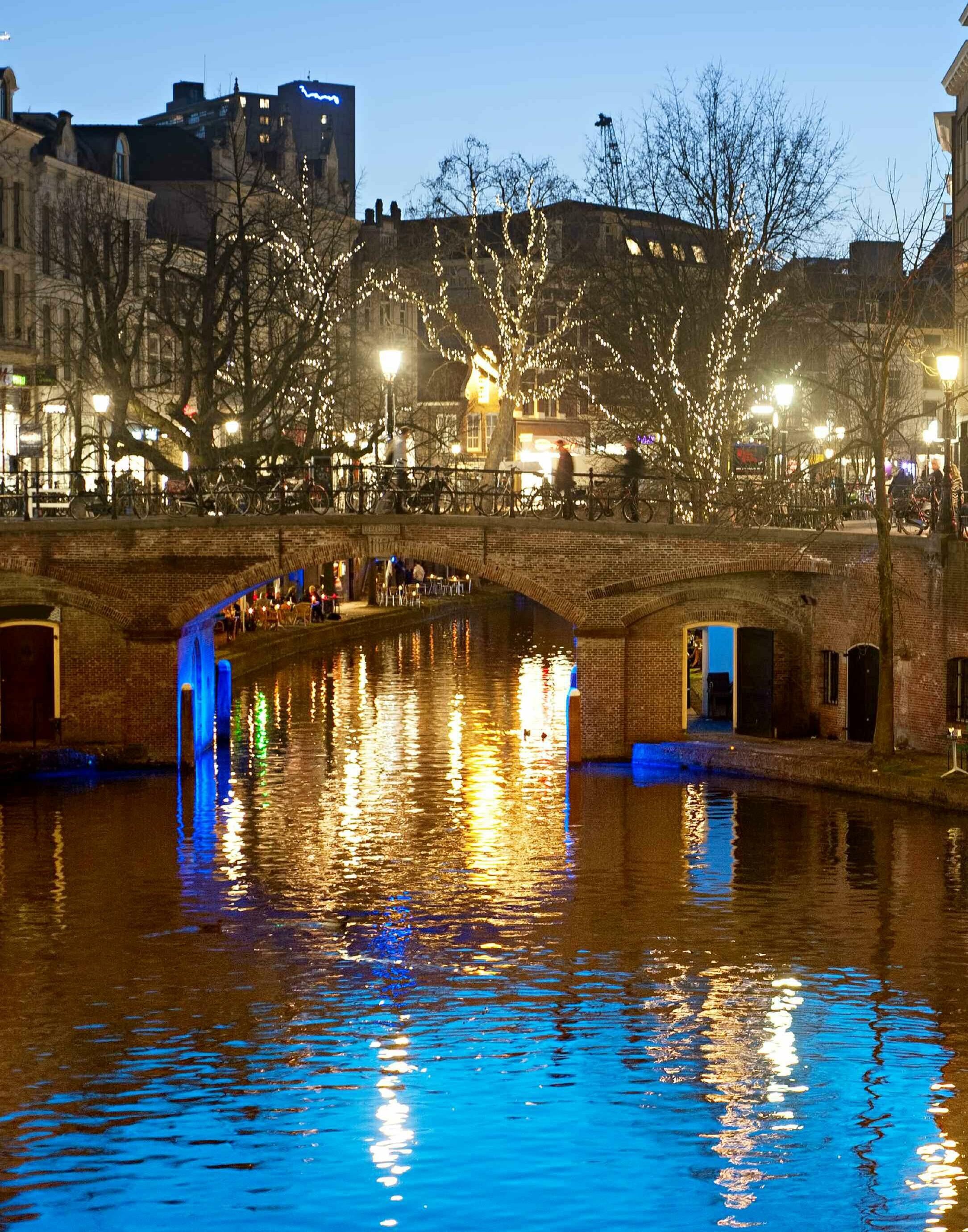 d a l l e q u a l i s i a p p r e z z a l a m a g n i f i c a a r c h i t e t t u ra m e d i ev a l e , t a r dogotica e rinascimentale di Utrecht e la sua vivacità nei nume r o s i l o c a l i a p e l o d ’ a c q u a , s u l l a b a n c h i n a , f r u t t o d i u n s a p i e n t e restauro di antichi magazzini usati nel Medioevo per scaricare le merci di un fiorente sistema commerciale, facilitato dall’ingegnosa canalizzazione che percorreva tutta la città. Oggi l'Oudegracht, il canale vecchio, e il Nieuwegracht, il canale nuovo, sono un pre z i o s o m o l t i p l i c a t o r e d e l t u r i s m o c h e r i m a n e c o m u n q u e s o b r i o e n o n i nv a s i vo U t r e c h t f u l a p r i m a s e d e ve s c ov i l e e c e n t r o e c c l e siastico dei Paesi Bassi settentrionali