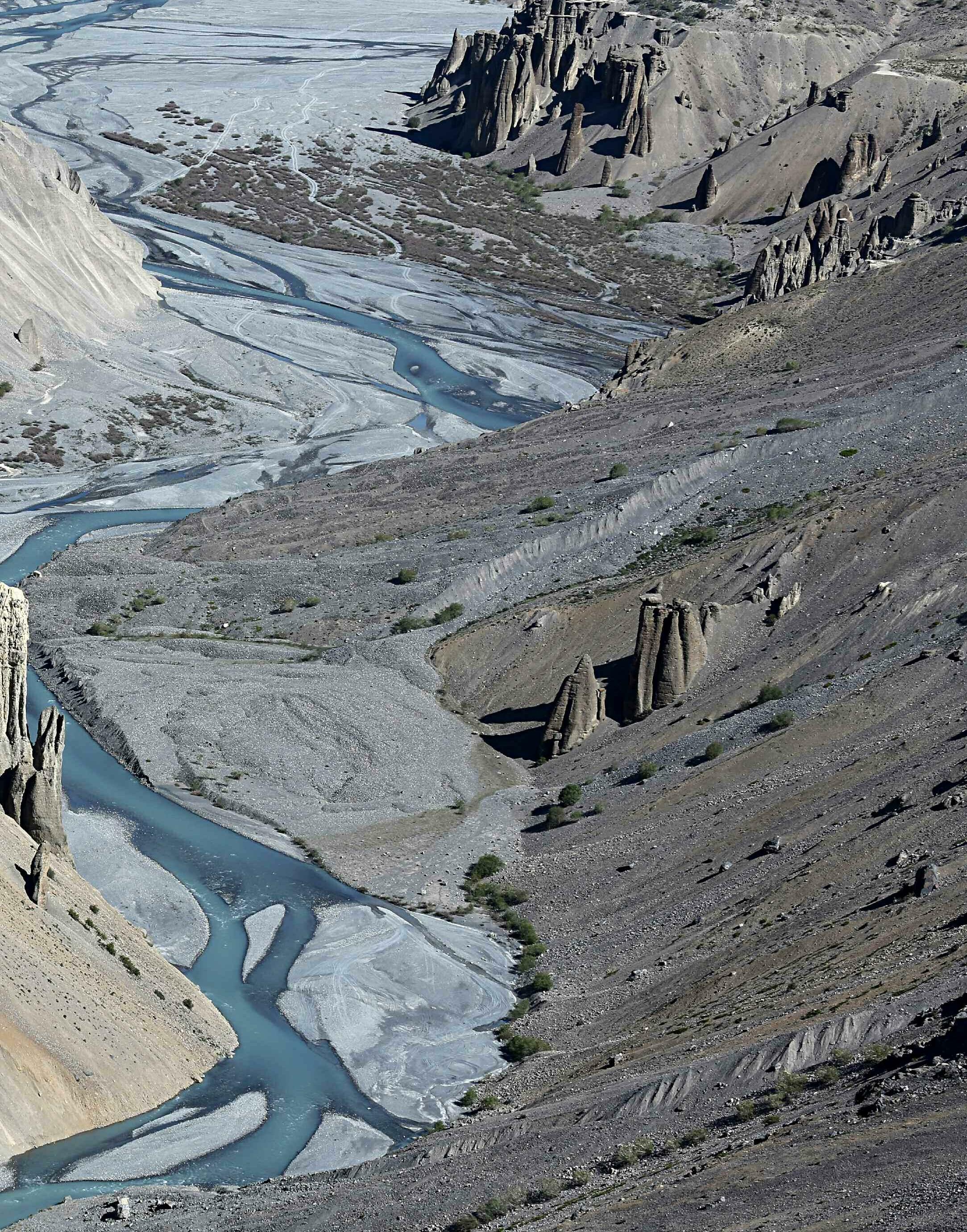 Bloccato da neve e ghiaccio per metà dell'anno, ospita piccoli monasteri buddhisti, precariamente appollaiati sulle falesie rocciose, che spiccano sullo sfondo delle vette innevate
