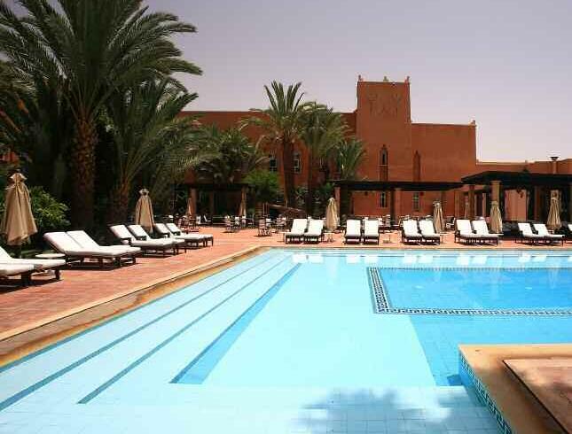 sso decadono le strutture moderne, fanno di questo hotel gliori a livello nazionale. Un punto decisamente a favore re è anche la posizione: a differenza di molti alberghi di ocati lontano dai centri cittadini, questo si trova invece a i dal centro di Ouarzazate, la “Hollywood marocchina”. e, infatti, oltre ad essere considerata la porta d’entrata del n realtà il deserto vero e proprio inizia a Mhamid, 300 più a est), ospita due degli studios più importanti della rafia mondiale: i CLA Studios e l’Atlas Cooperation Film ve sono state girate scene di lungometraggi come Il trono gladiatore, Lawrence d’Arabia, diverse serie di Asterix e stesso hotel ha nelle sue sale memorabilia, mobili e intere e di film, come una delle bighe utilizzate in Ben Hur o la sala