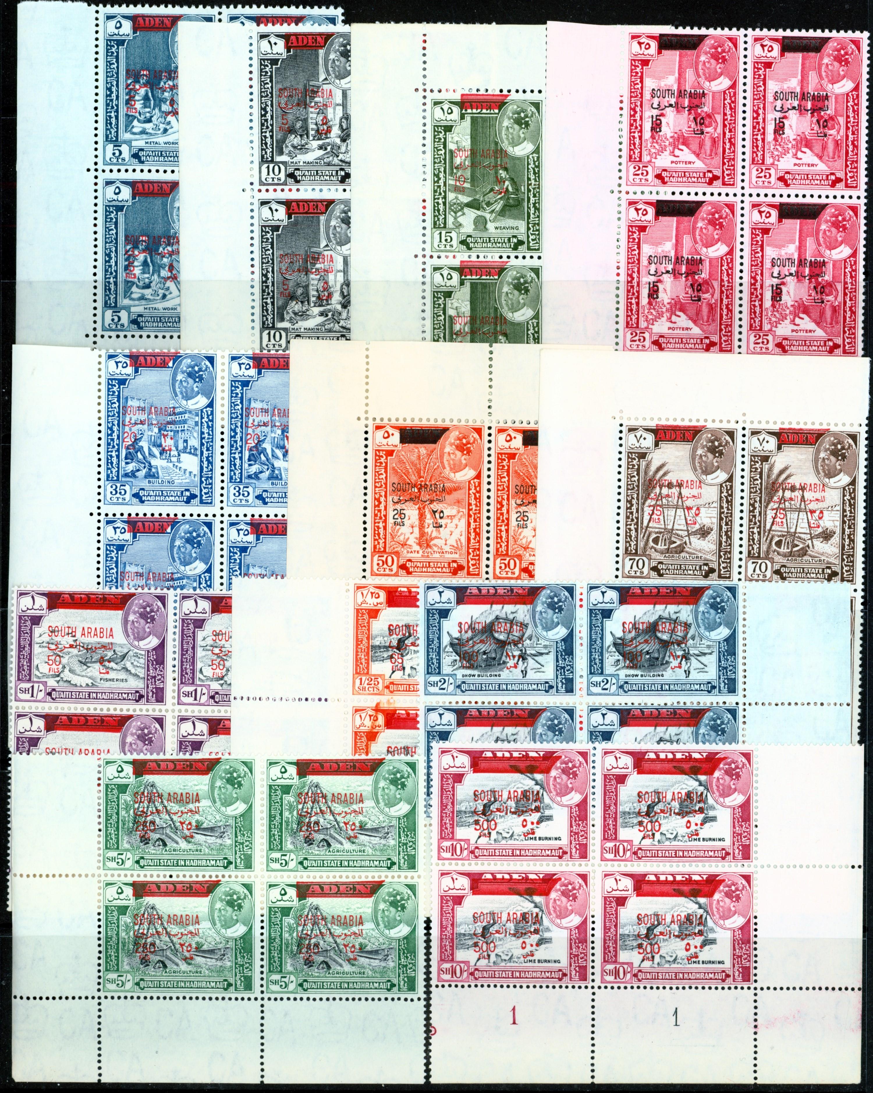 South Arabian Fed Hadhramaut 1966 set of 12 SG53-64 in V.F MNH Corner Blocks of 4 (1)
