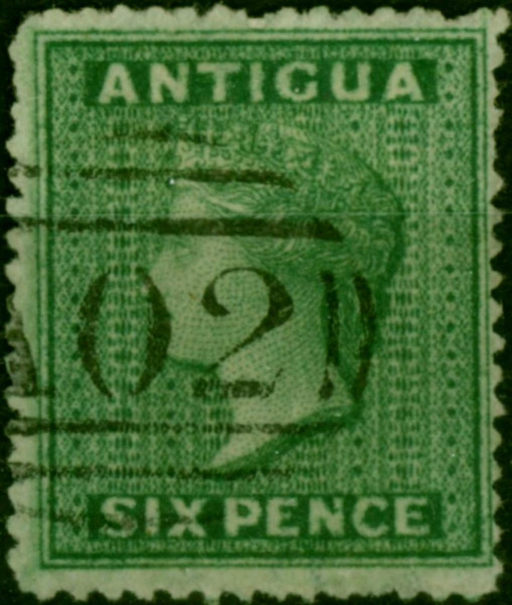Antigua 1863 6d Green SG8a 'Wmk Upright' V.F.U Scarce (2)
