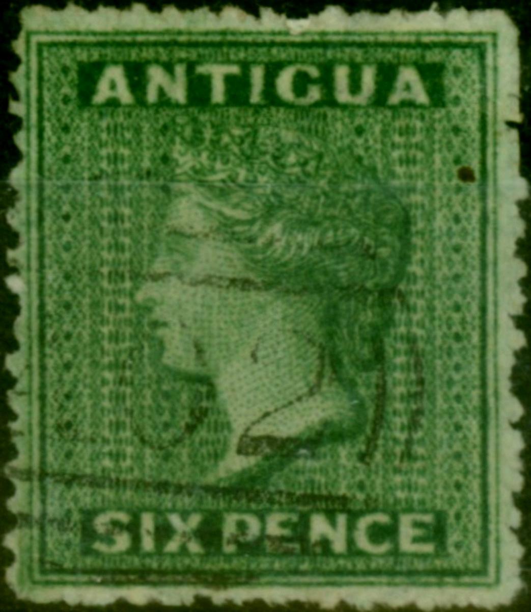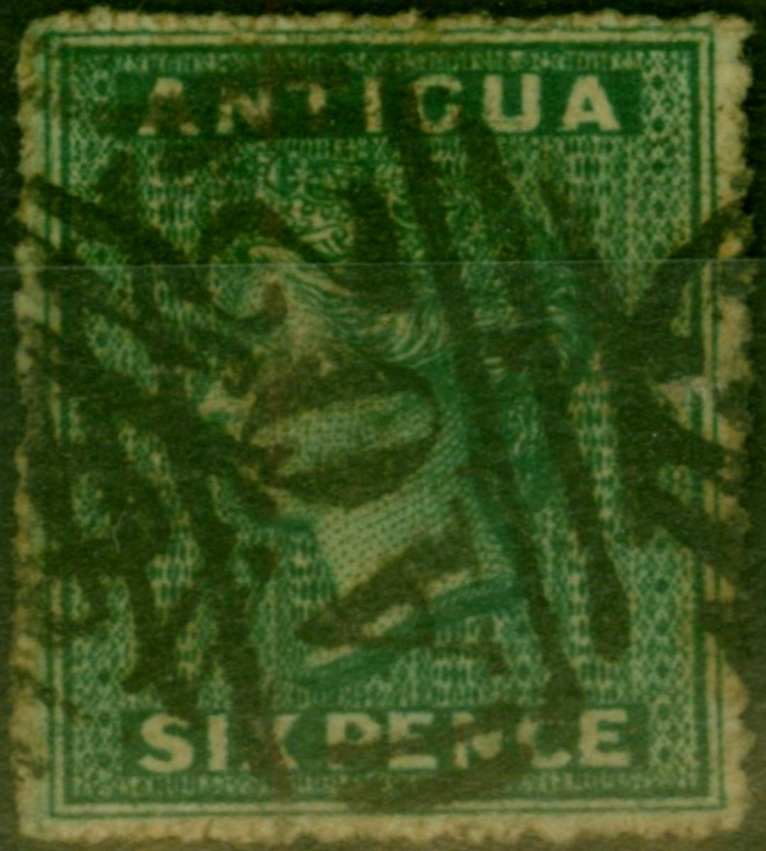 Antigua 1863 6d Green SG8a Wmk Upright Fine Used