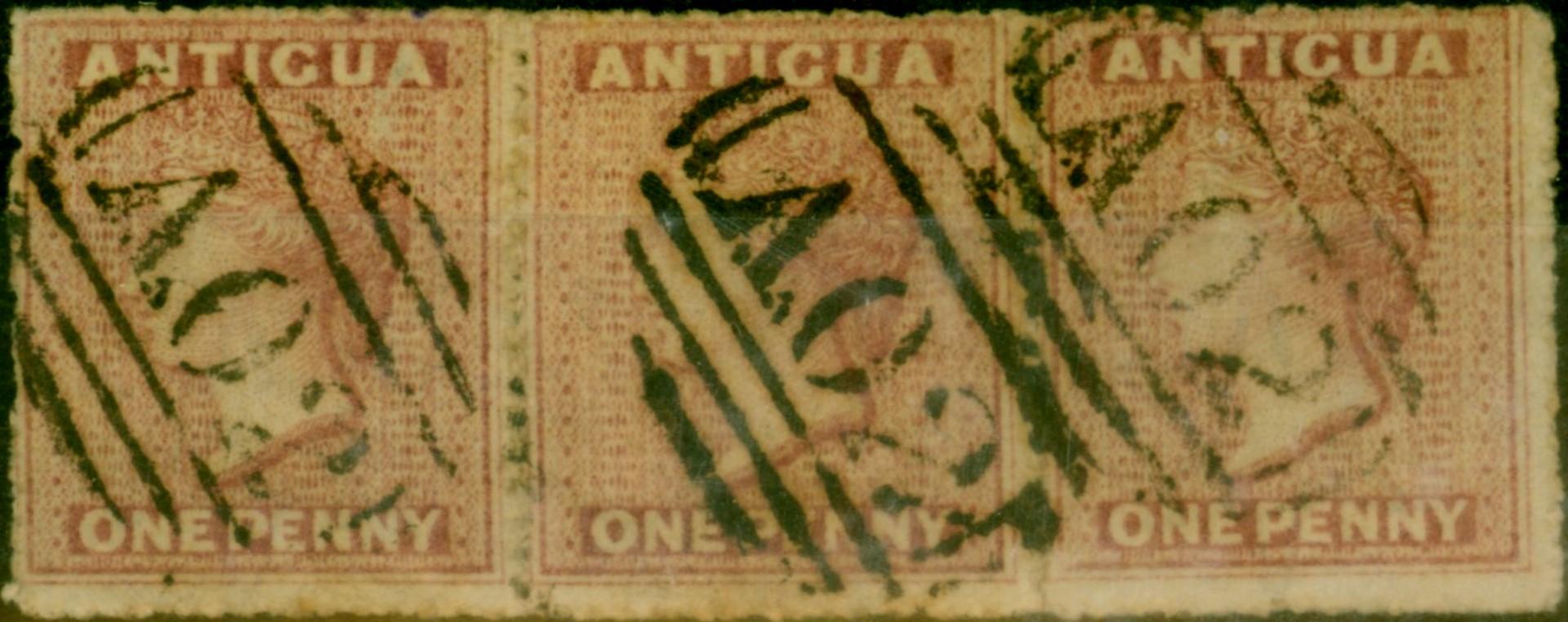 Antigua 1863 1d Rosy Mauve SG5 V.F.U Strip of 3 'St Johns' Duplex Scarce Multiple