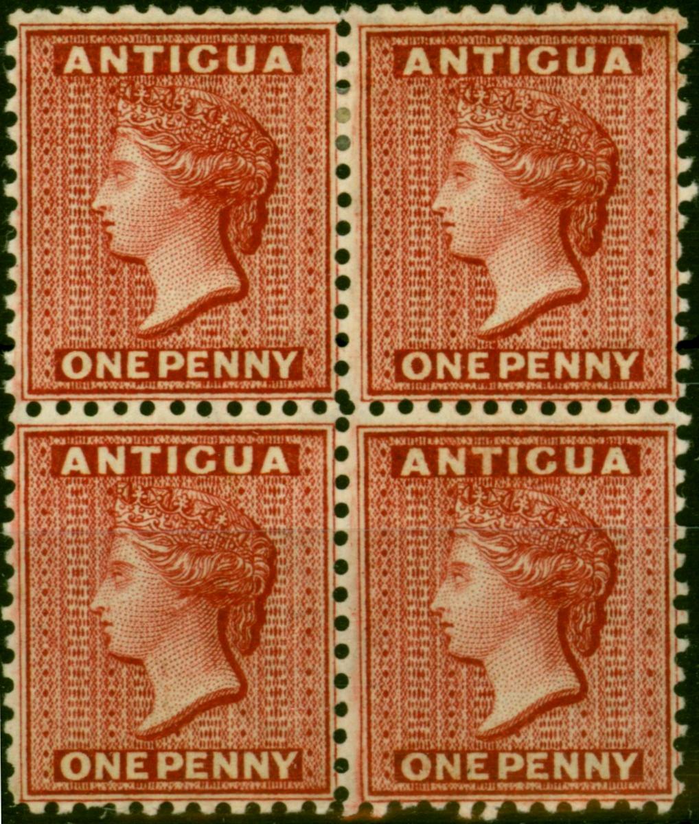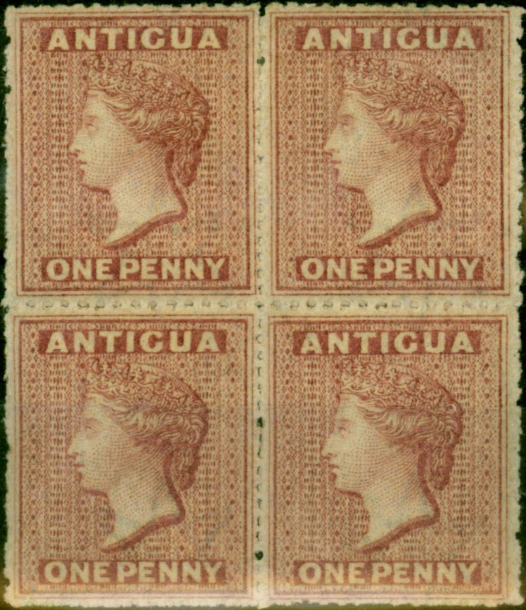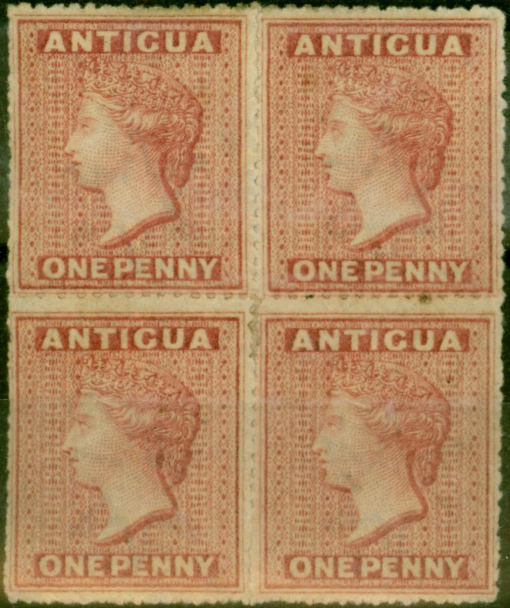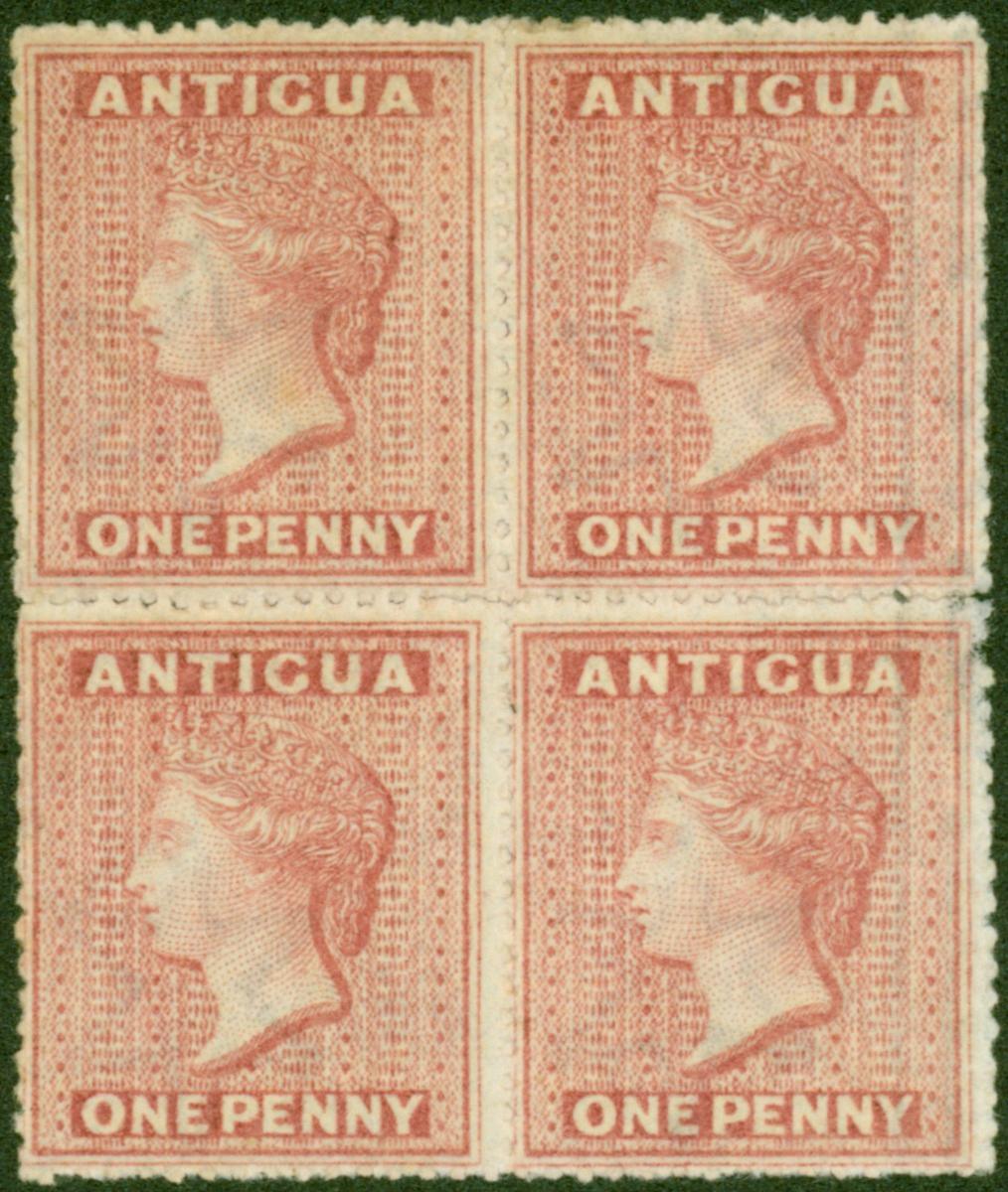 Antigua 1864 1d Dull Rose SG6 Fine MM Block of 4 Scarce Multiple