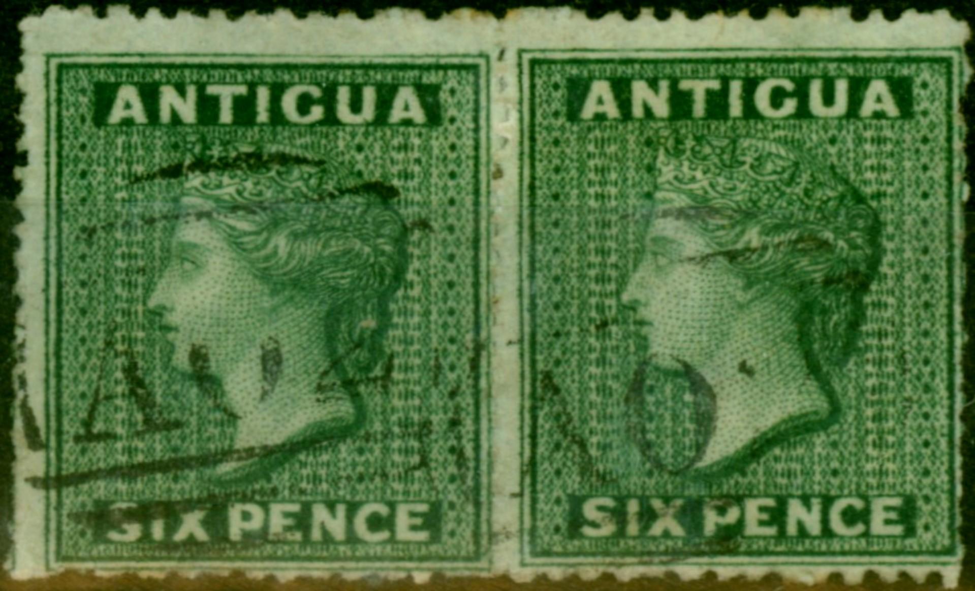 Antigua 1863 6d Green SG8 V.F.U Pair
