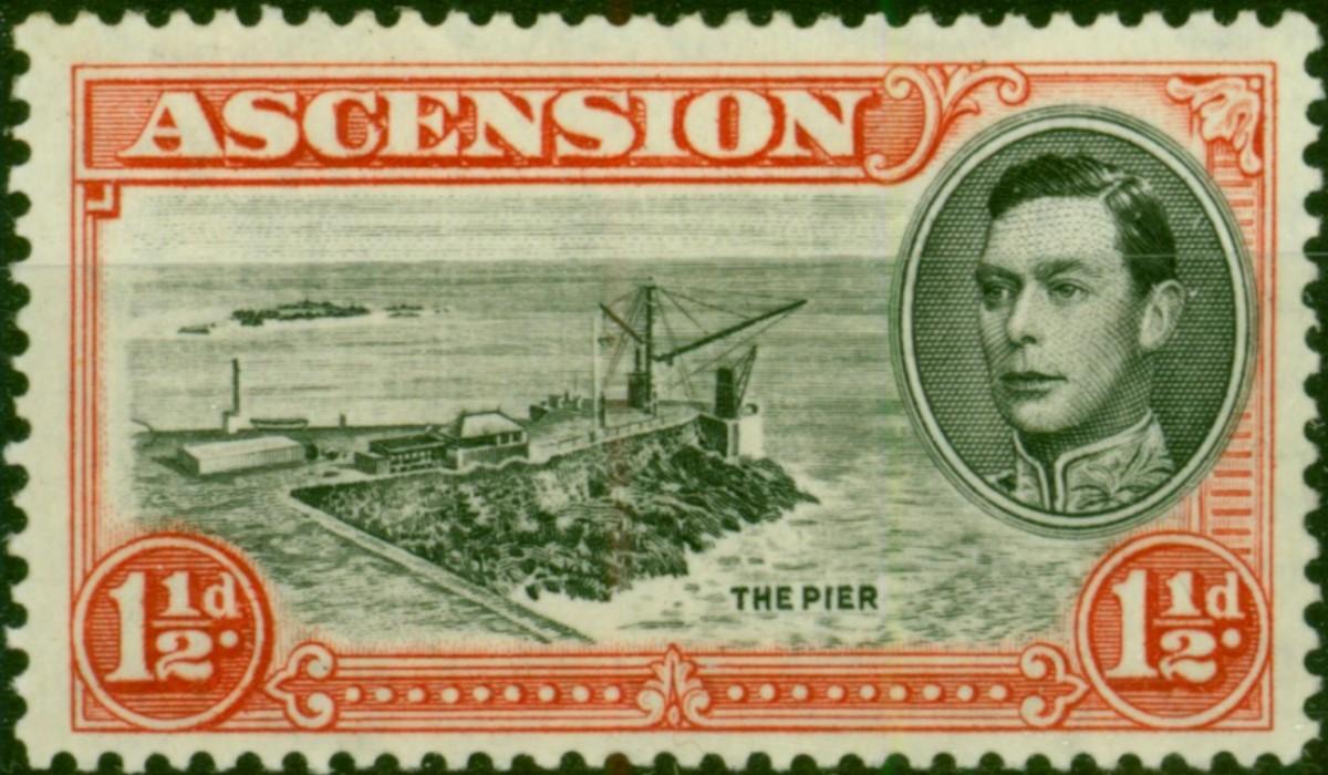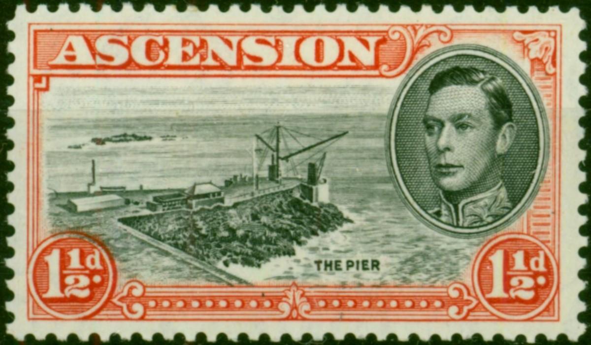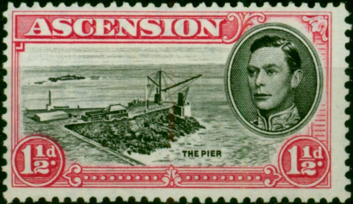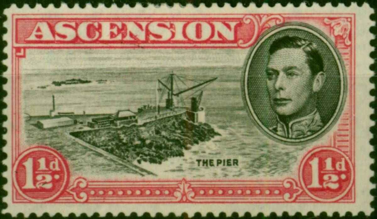 Ascension 1944 1 1/2d Black & Vermilion SG40ba P.13 'Davit Flaw' Fine & Fresh MM