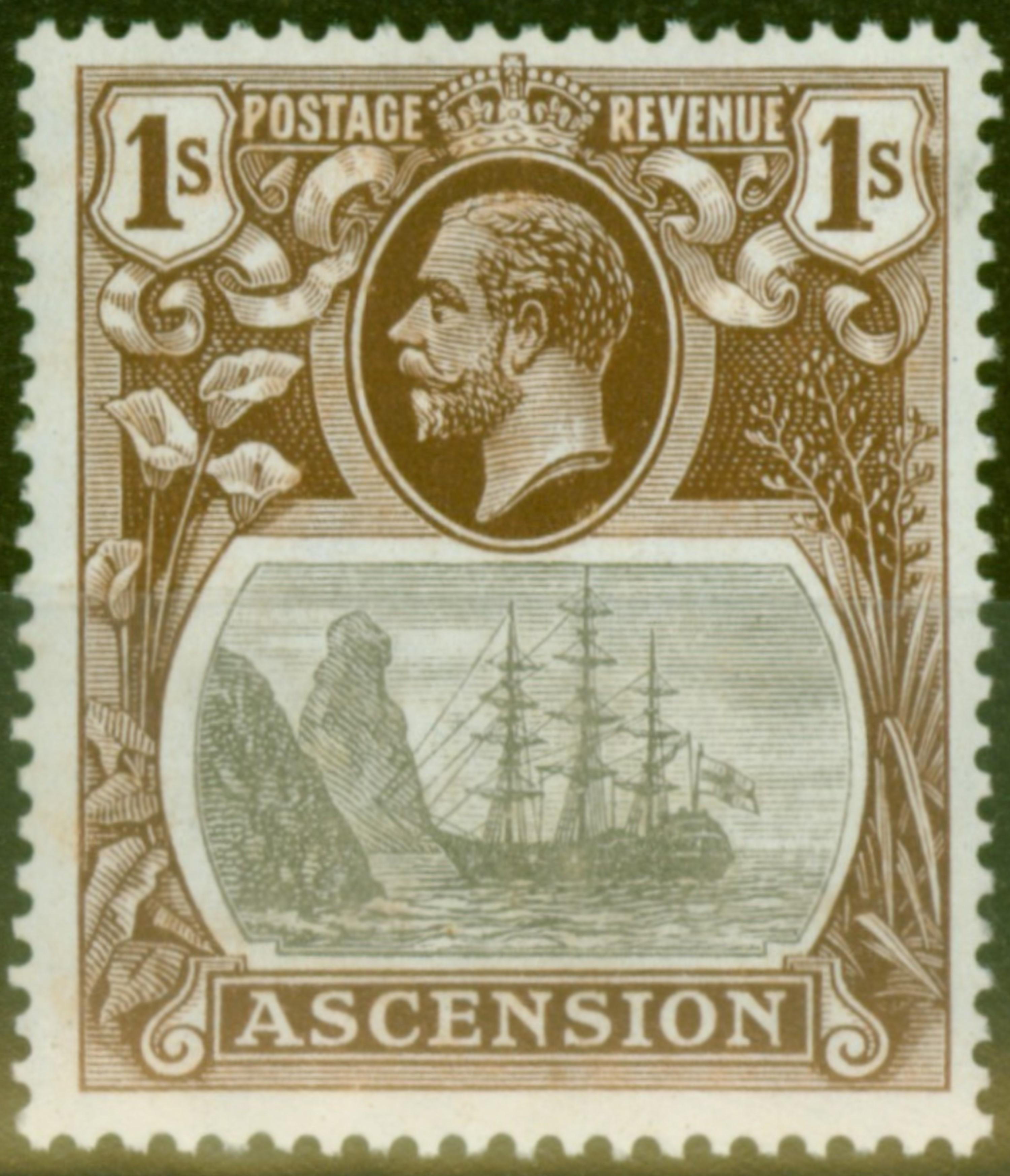Ascension 1924 1s Grey-Black & Brown SG18a Broken Mainmast V.F VLMM