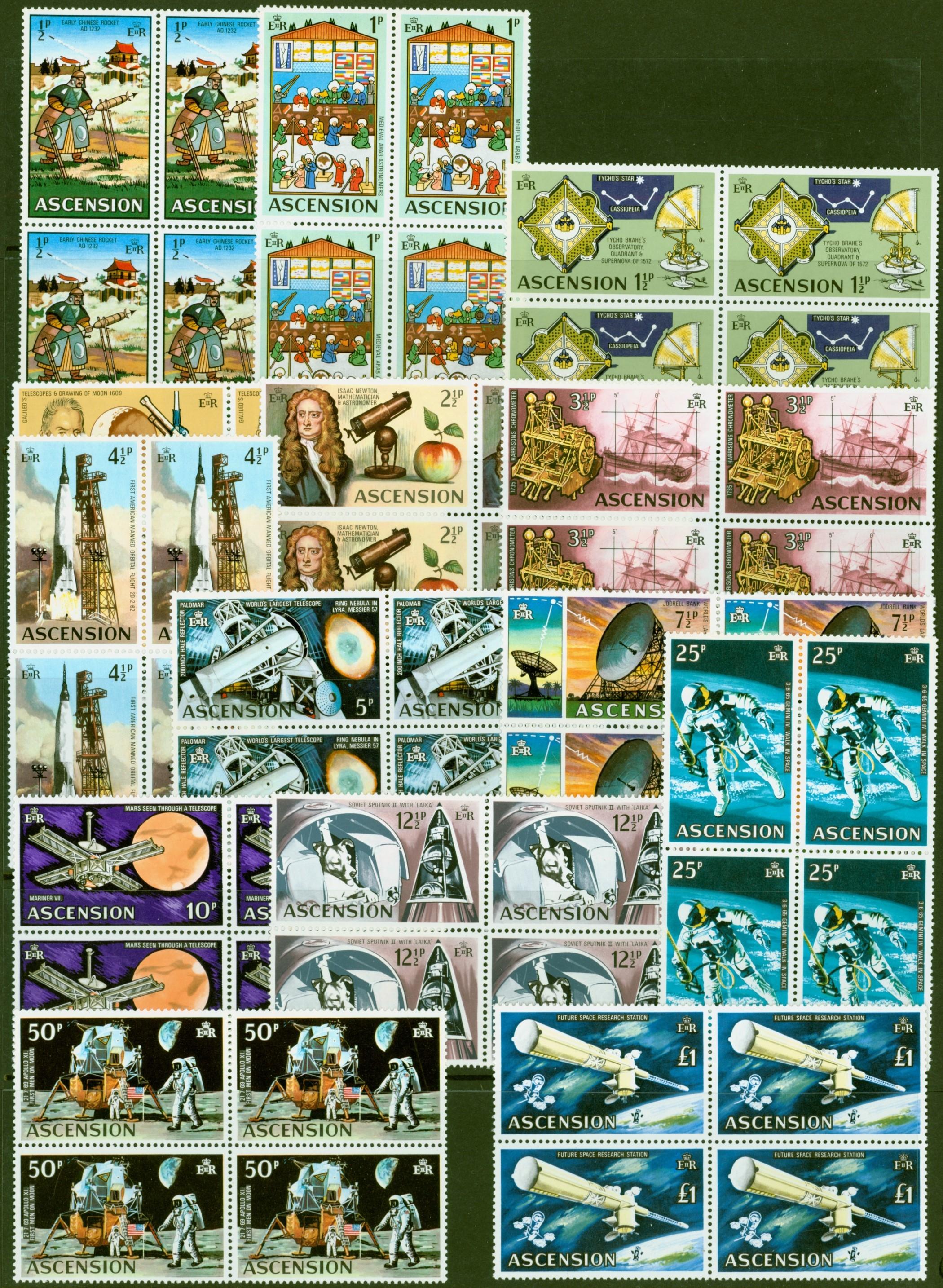 Ascension 1971 Space Travel set of 14 SG135-148 in Superb MNH Blocks of 4