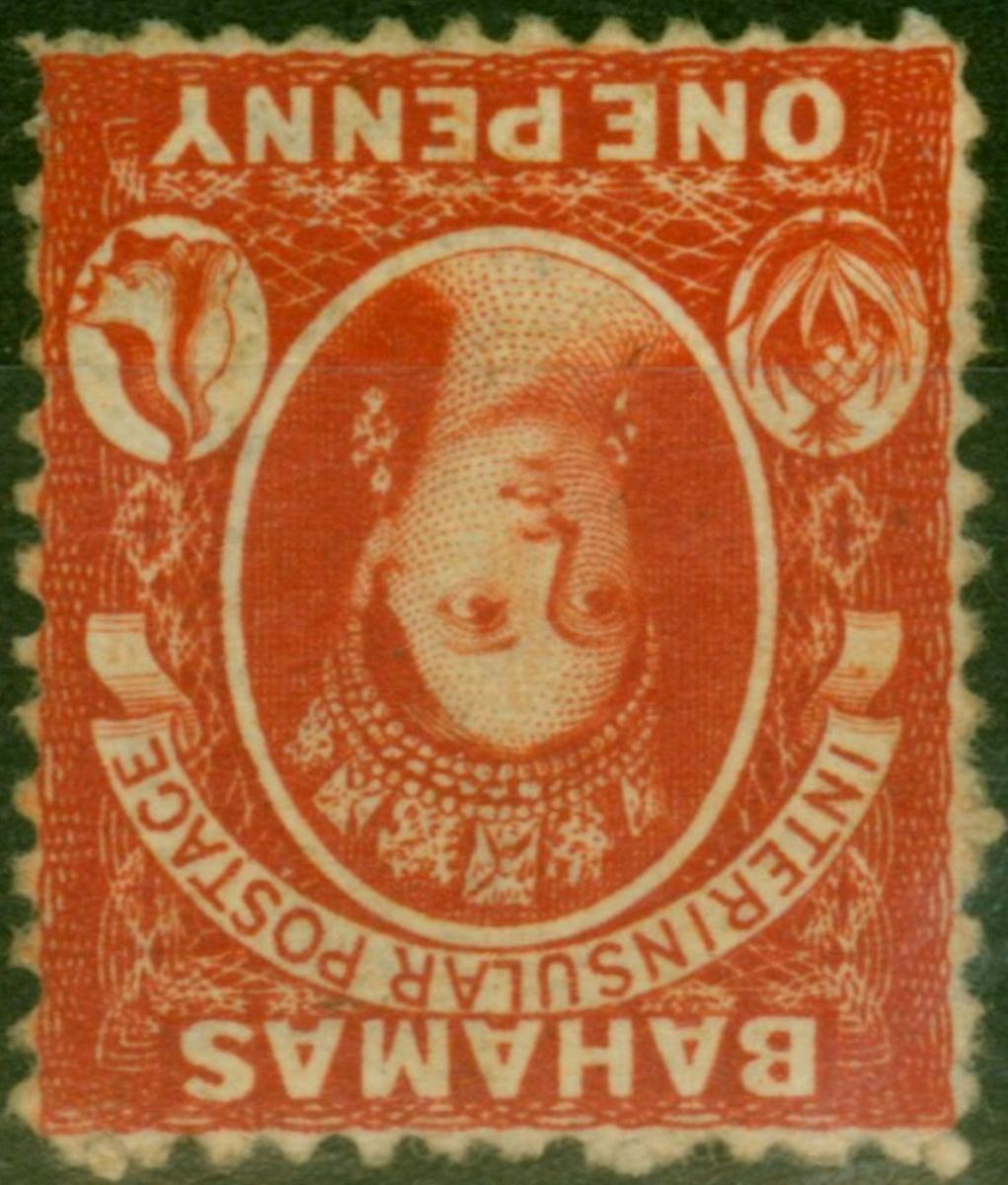 Bahamas 1875 1d Vermilion SG25y Wmk Inverted & Reversed Fine Unused