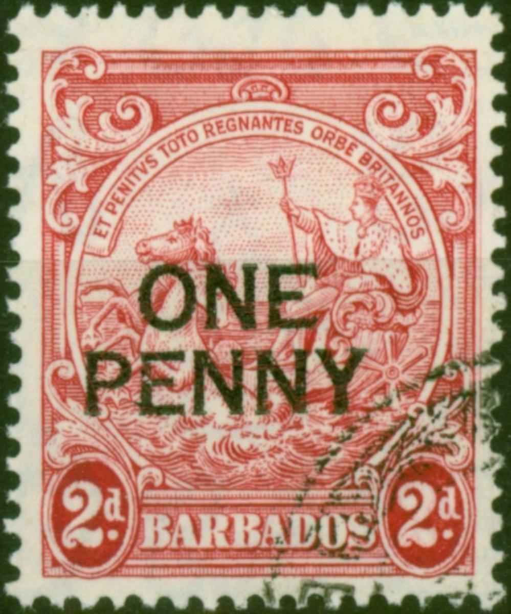 Barbados 1947 1d on 2d Carmine