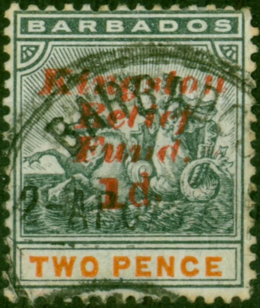 Barbados 1907 1d on 2d Slate-Black & Orange SG153 Good Used