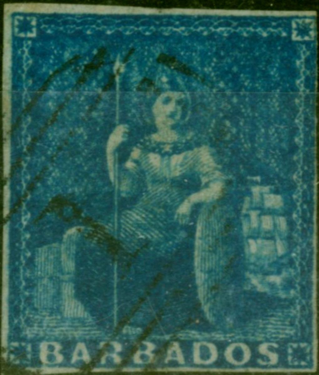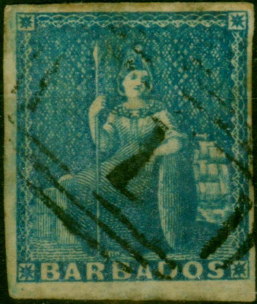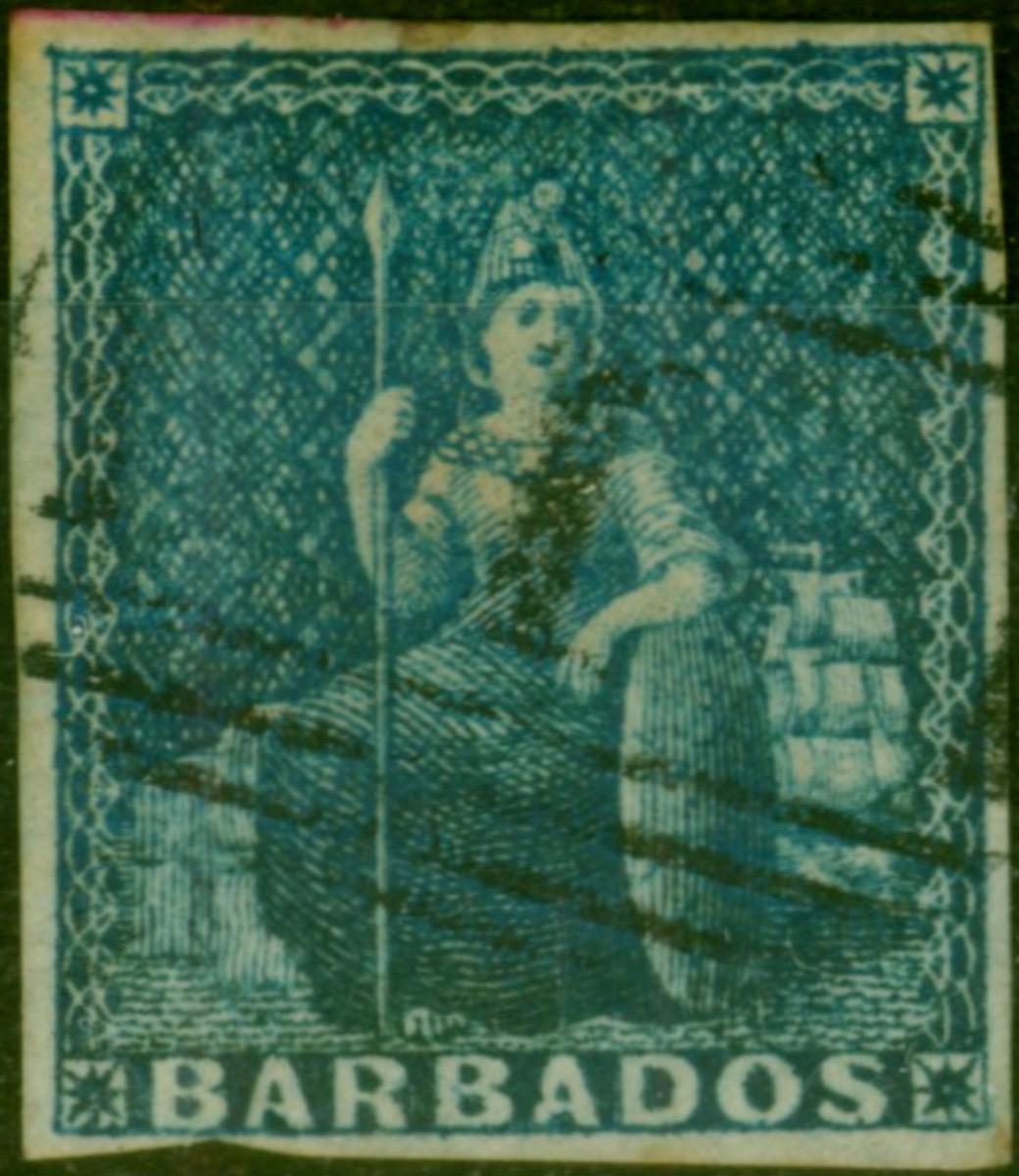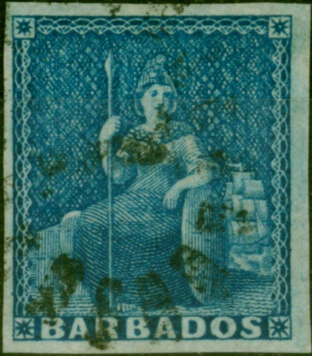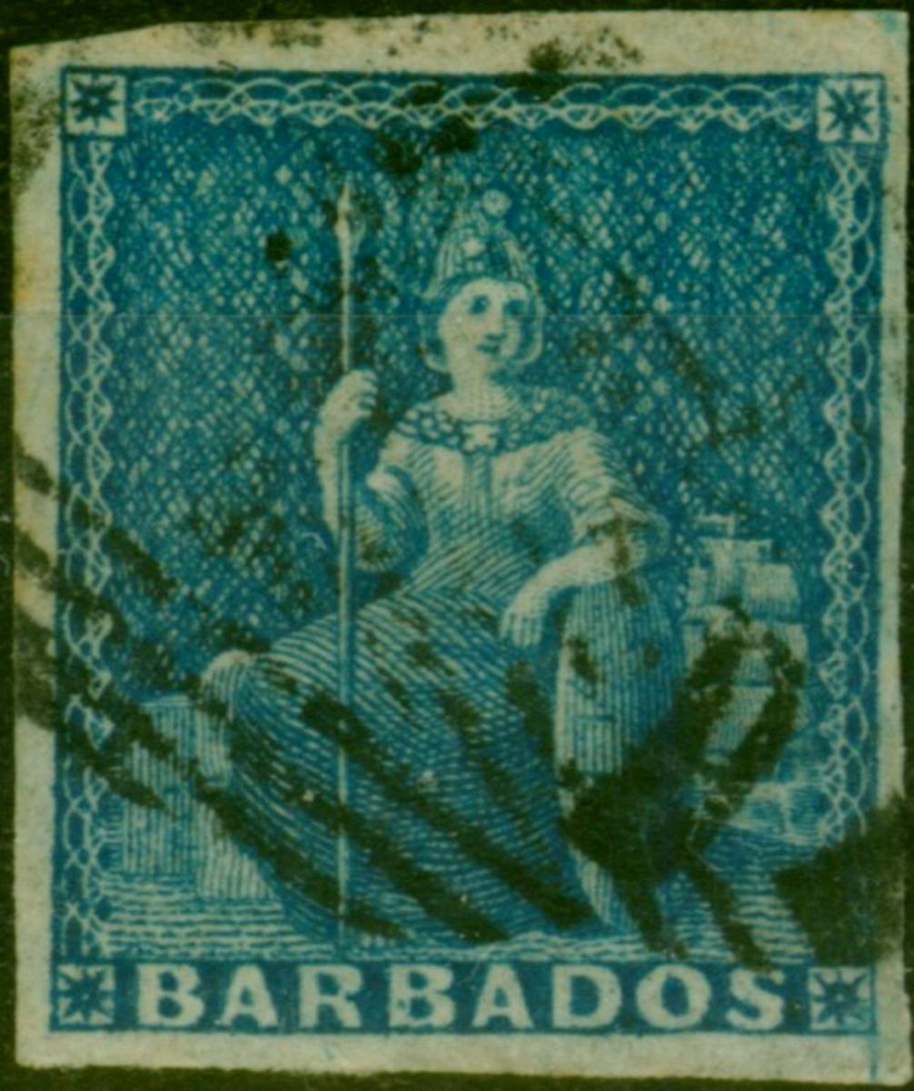 Barbados 1855 (1d) Deep Blue SG10 Good Used