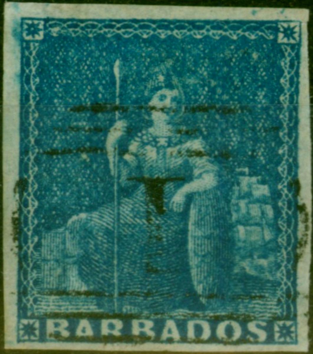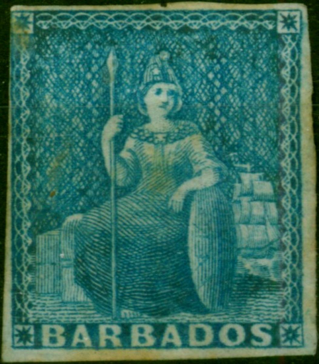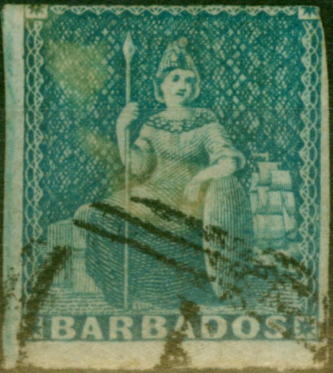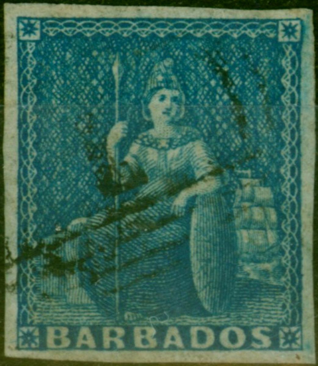 Barbados 1855 (1d) Deep Blue SG10 Good Used