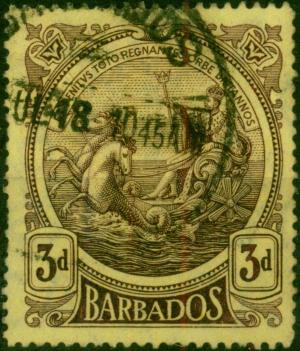 Barbados 1921 3d Purple & PaleYellow SG213 Fine Used (2)