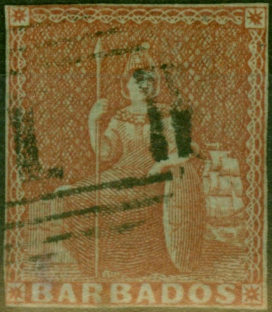 Barbados 1855 (4d) Brownish Red SG5 Good Used (2)