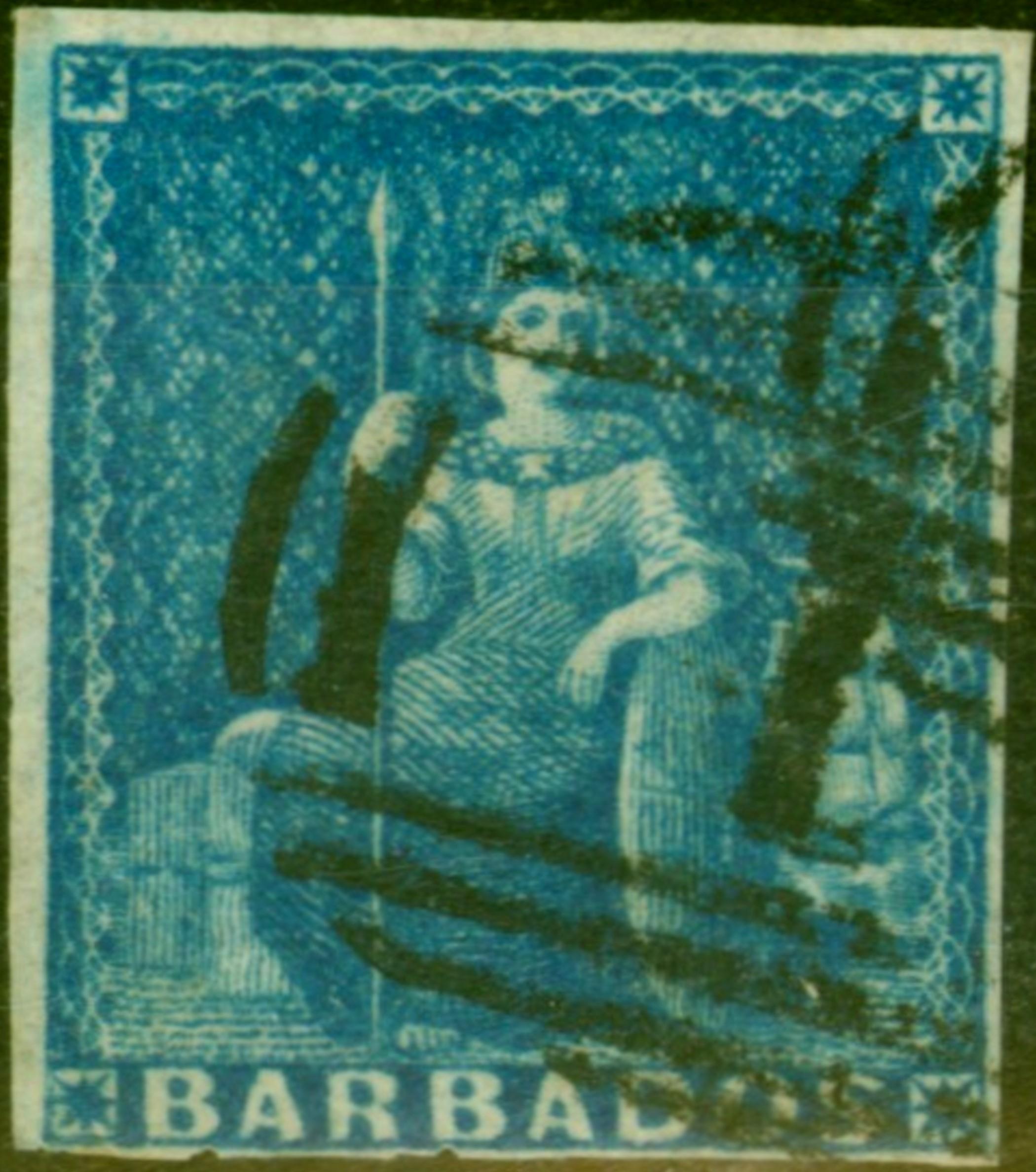 Barbados 1855 (1d) Deep Blue SG10 Fine Used (5)
