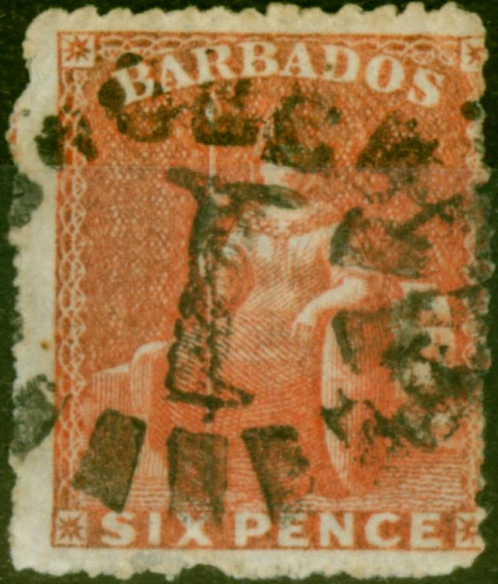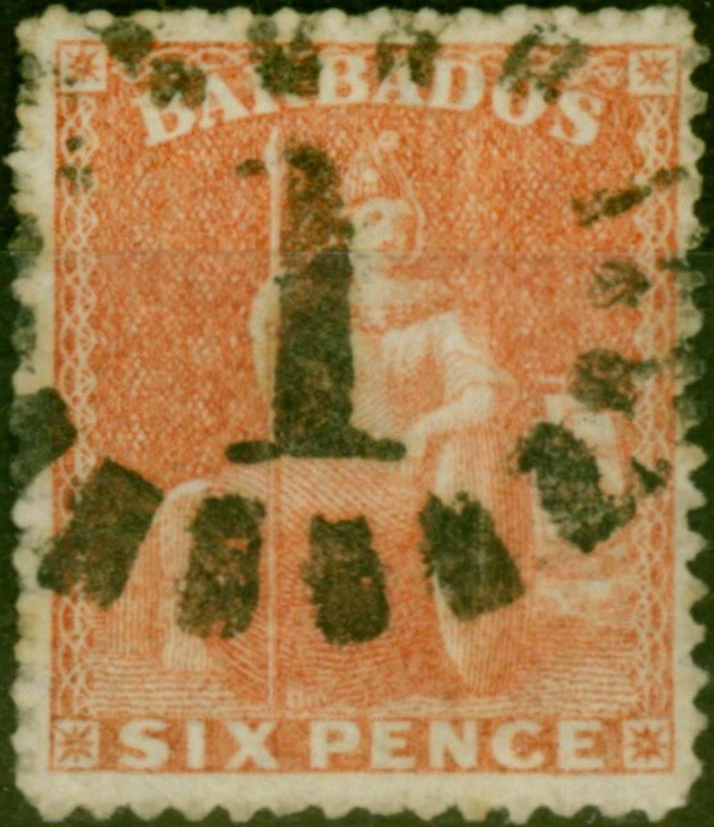 Barbados 1864 6d Orange-Red SG30 Fine Used (2)