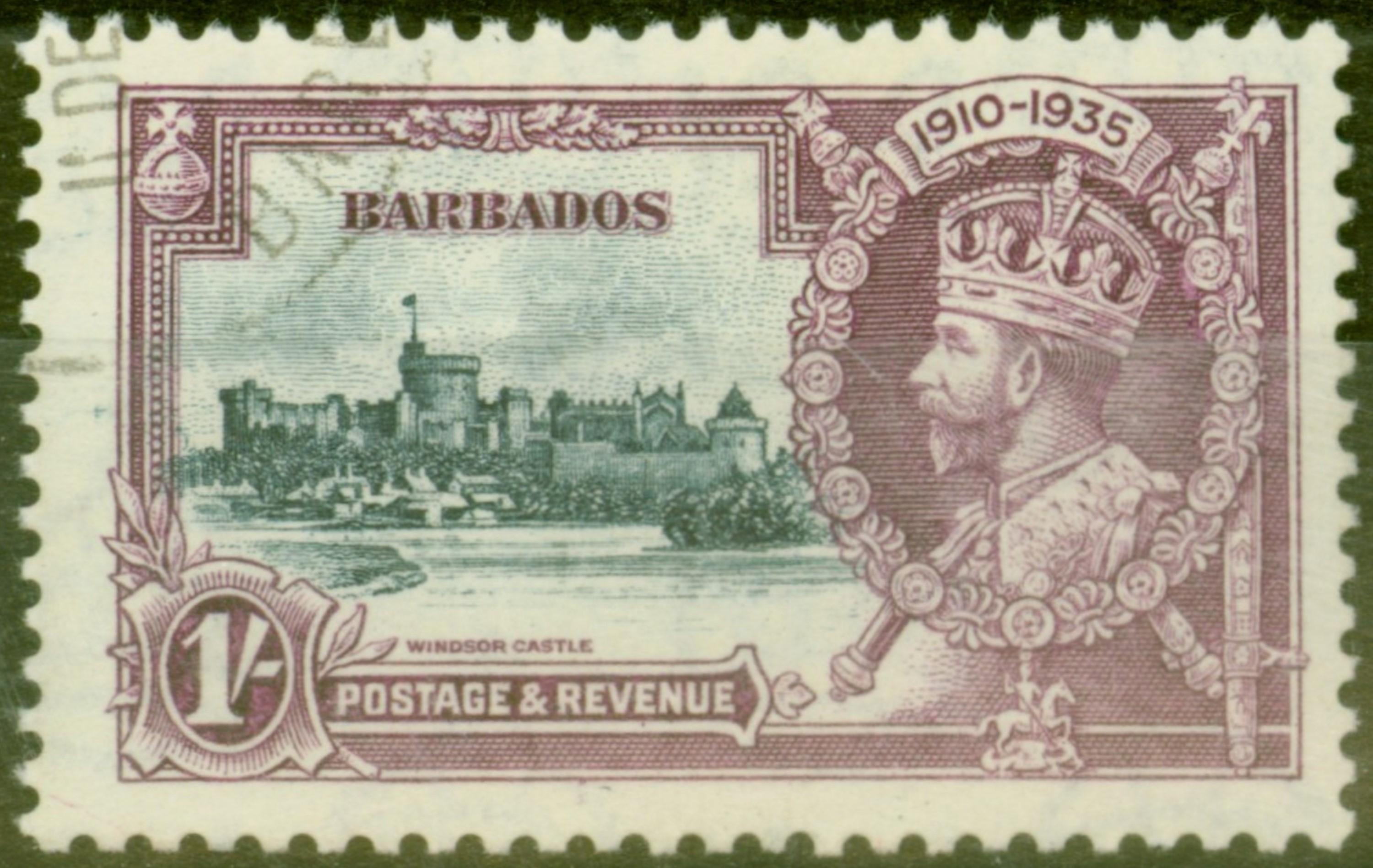 Barbados 1935 1s Slate & Purple SG244L Kite & Horiz Log Superb Used Scarce