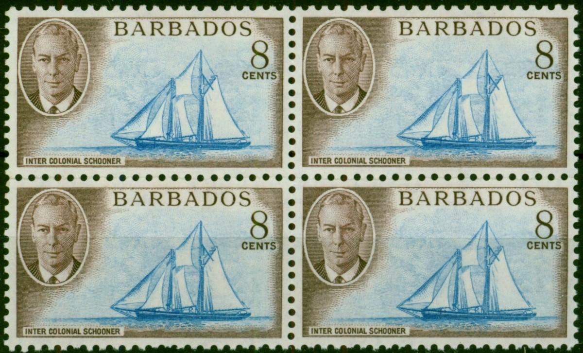 Barbados 1950 8c Bright Blue & Purple-Brown SG276 Fine MNH Block of 4