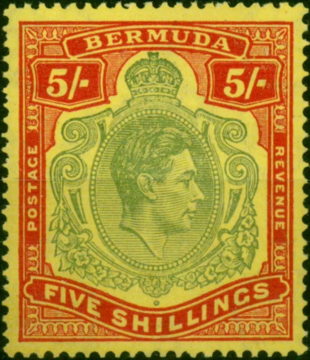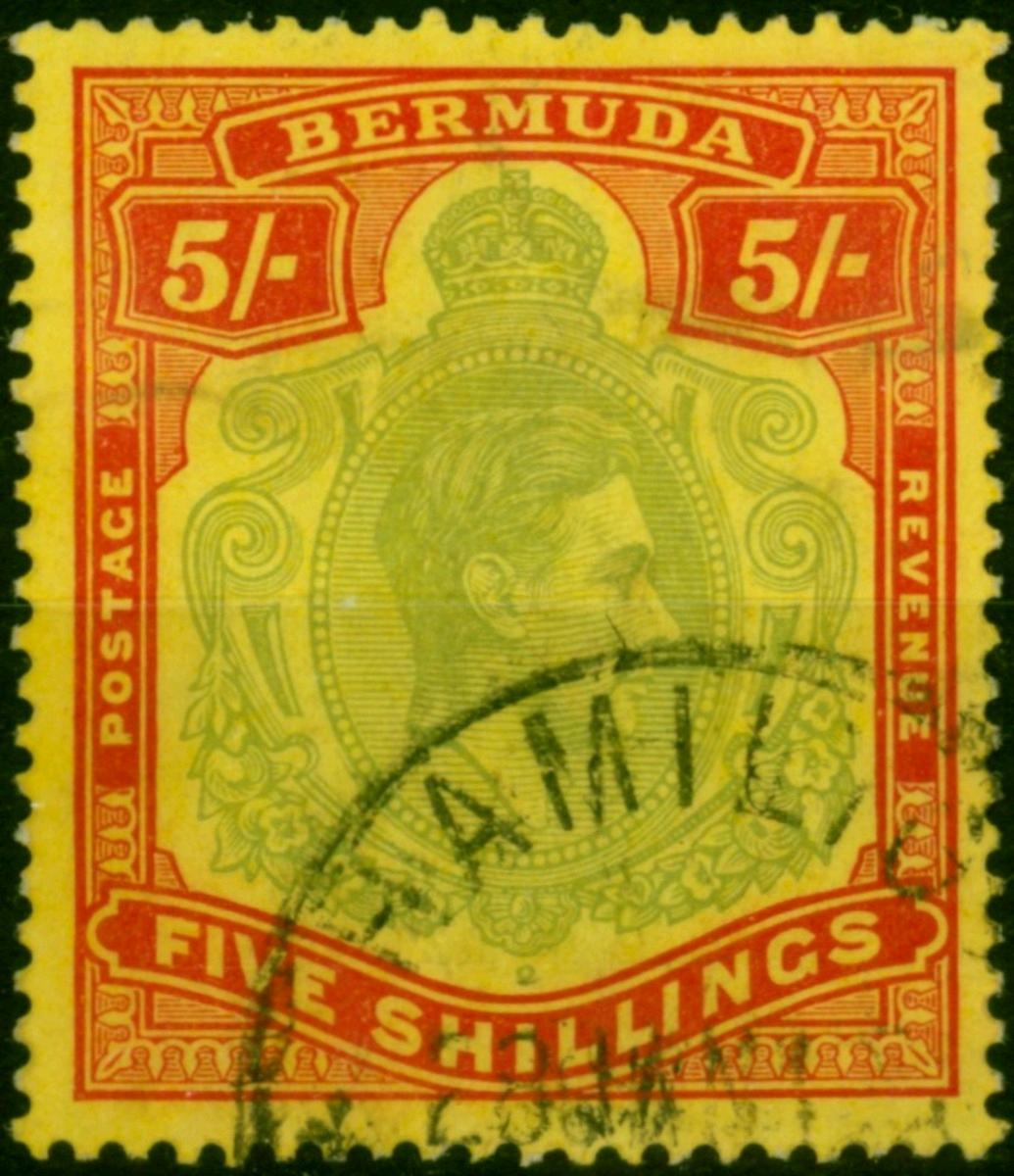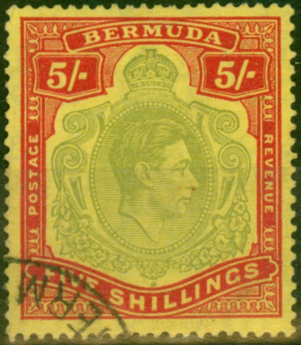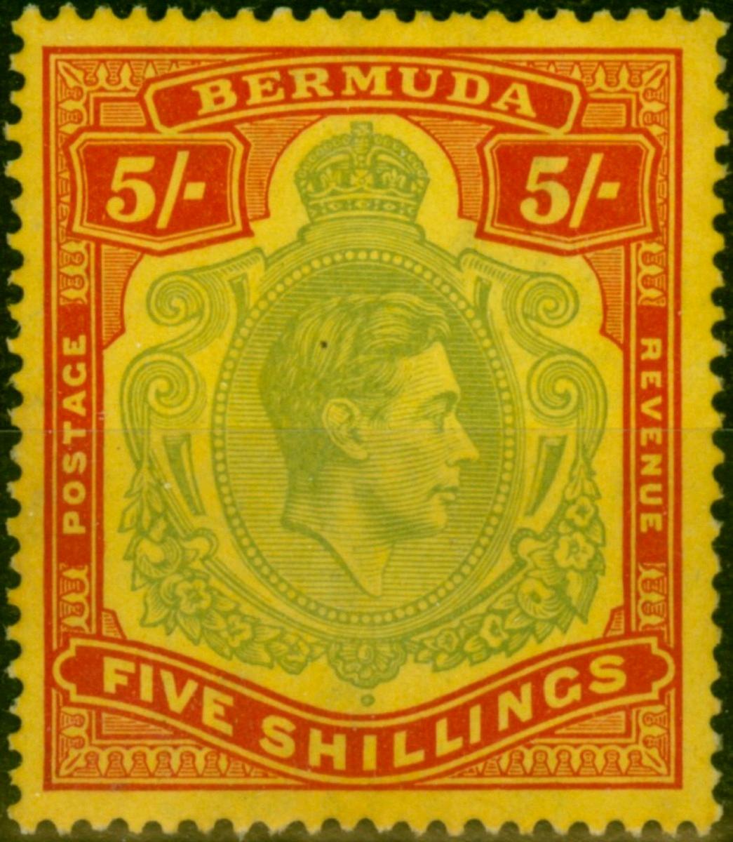 Bermuda 1943 5s Pale Bluish Green & Carmine-Red Pale Yellow SG118d HPF 38c V.F. LMM