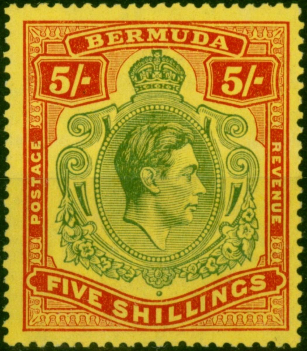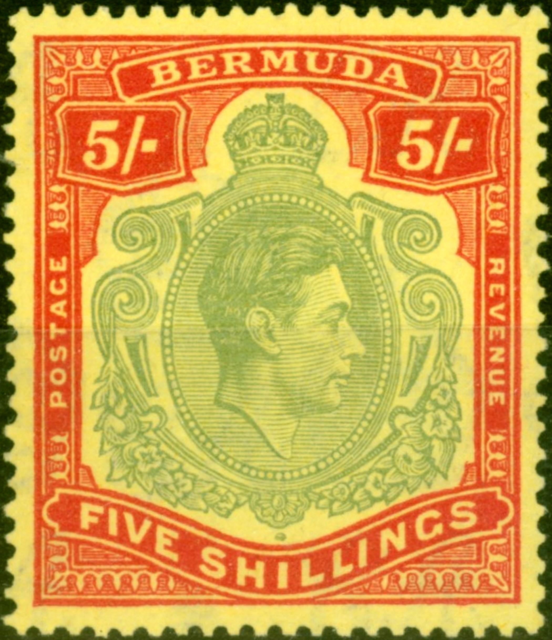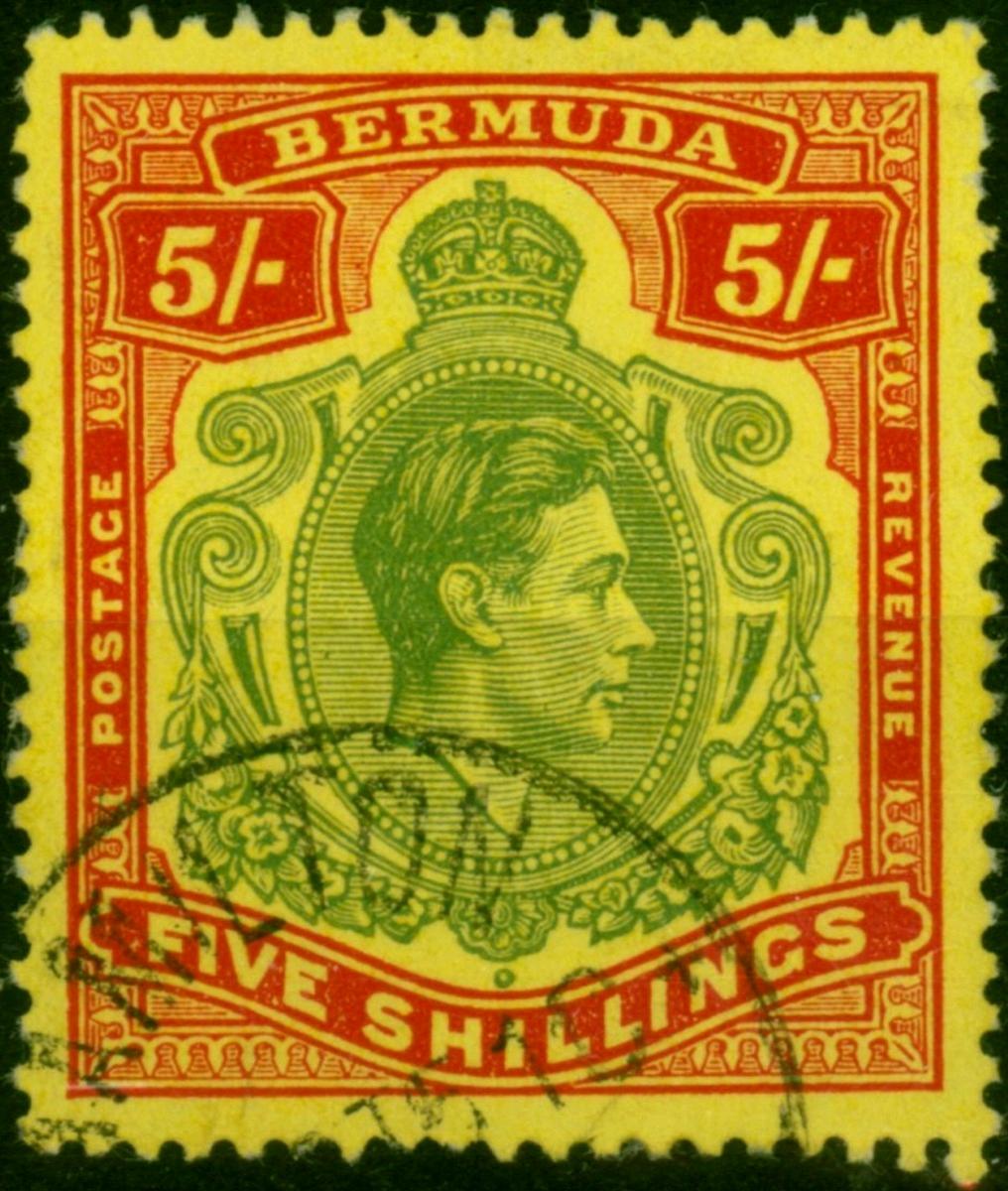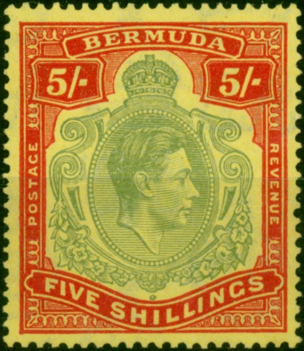 Bermuda 1943 5s Pale Bluish Green & Carmine-Red Pale Yellow SG118d HPF 38c V.F. LMM