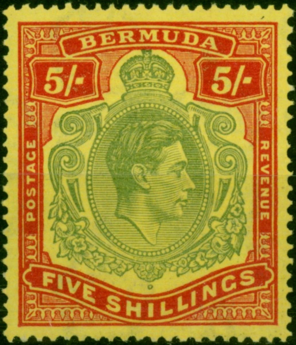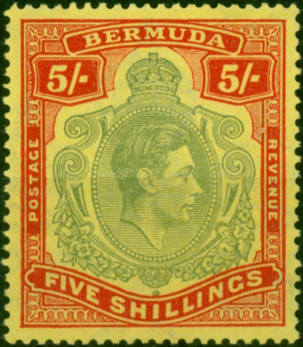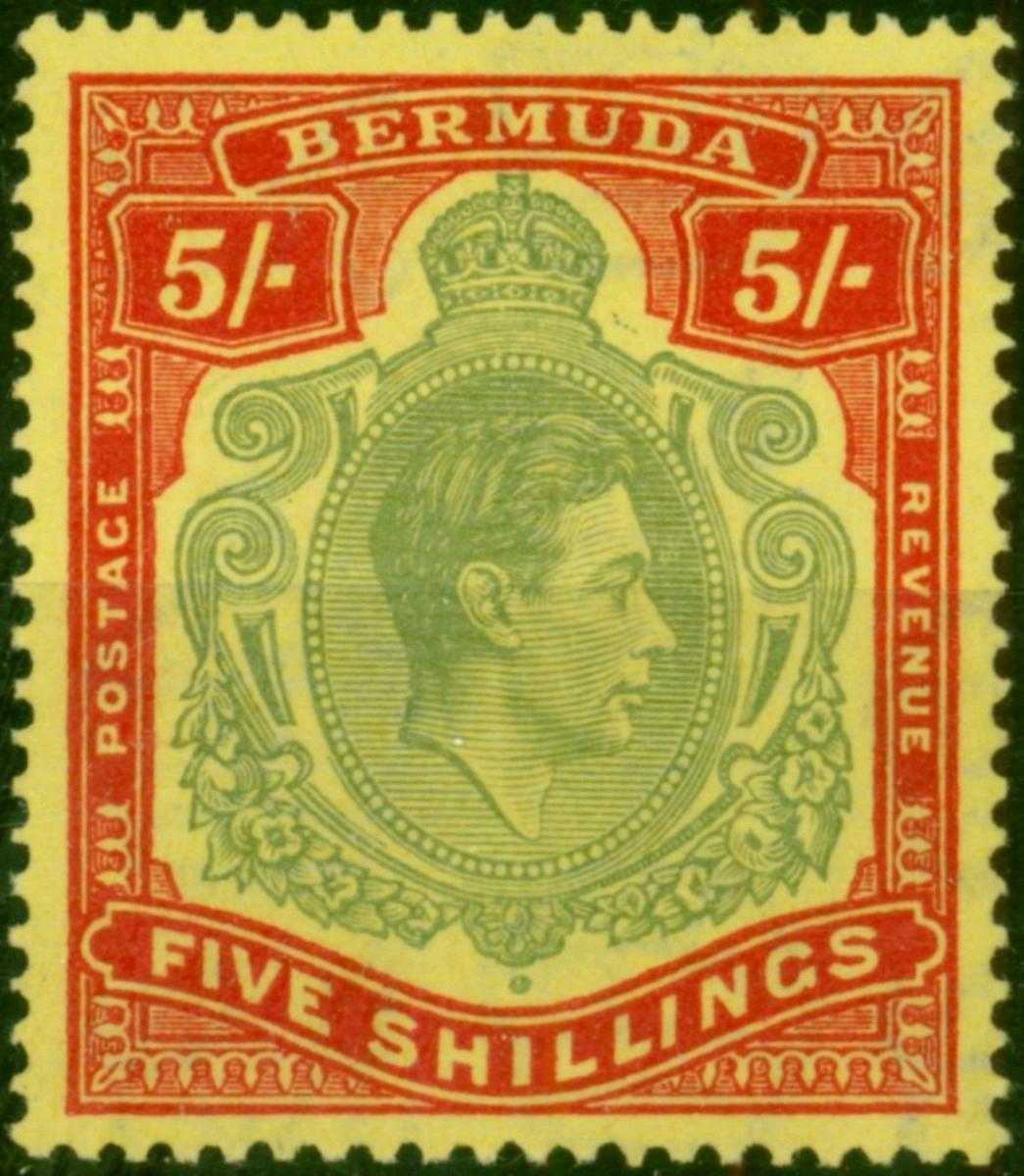 Bermuda 1943 5s Pale Bluish Green & Carmine-Red-Pale Yellow SG118d V.F MNH (2)