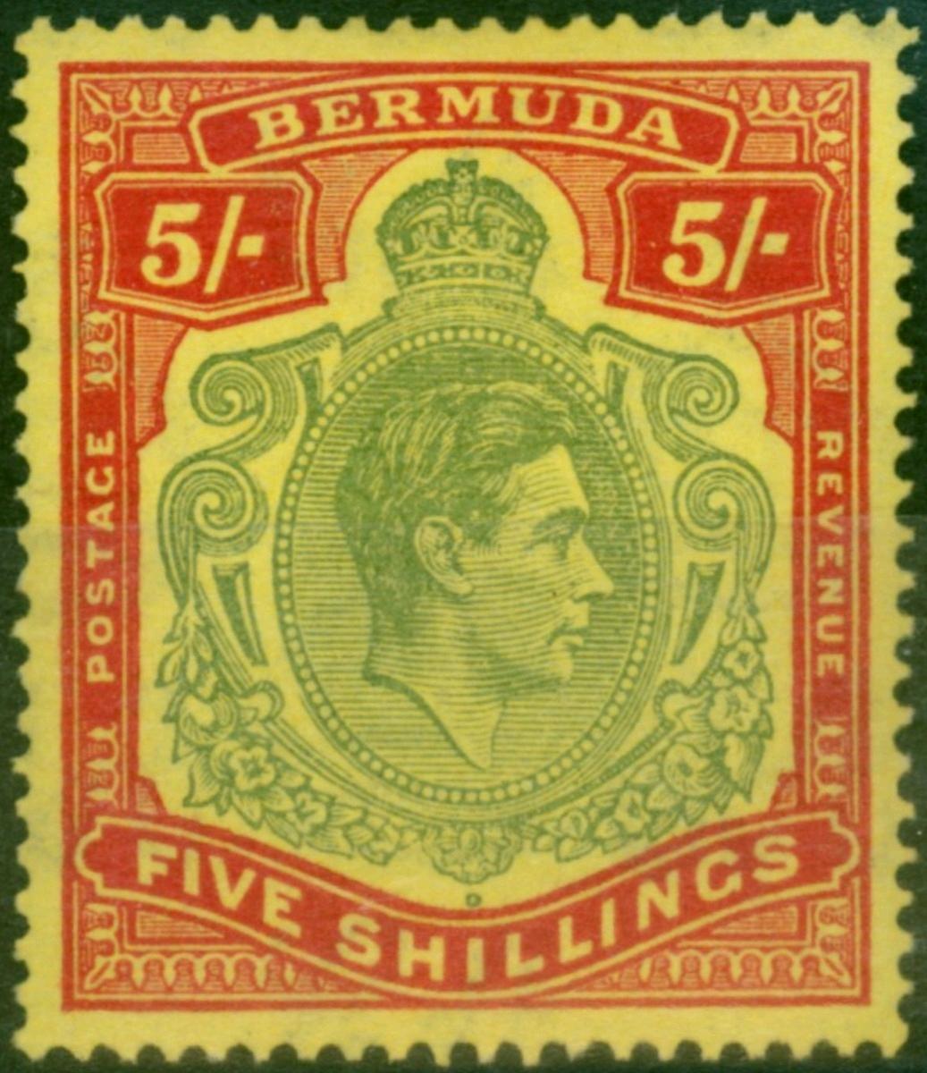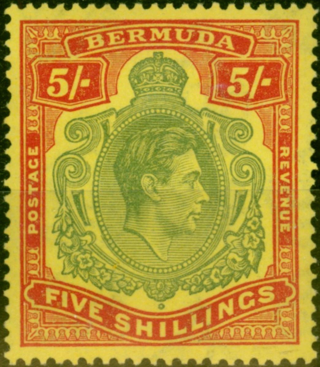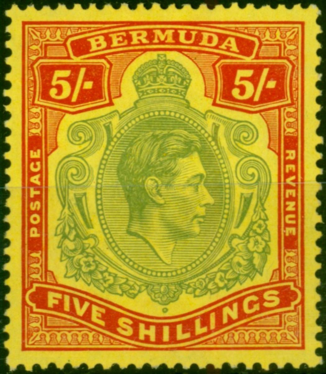 Bermuda 1943 5s Pale Bluish Green & Carmine-Red-Pale Yellow SG118d V.F MNH (2)