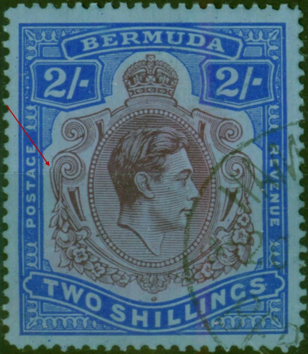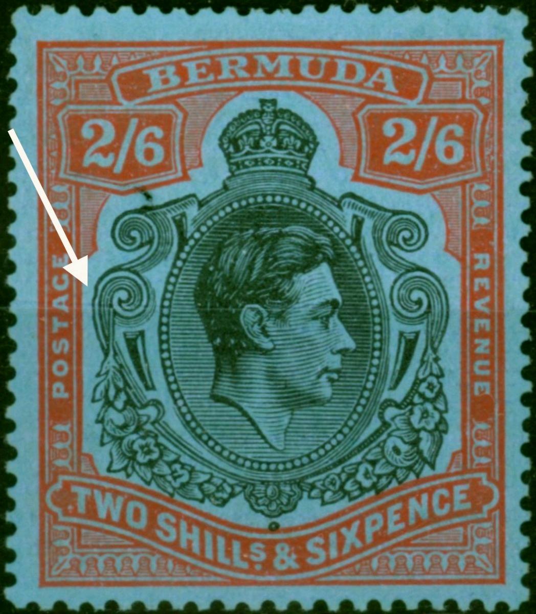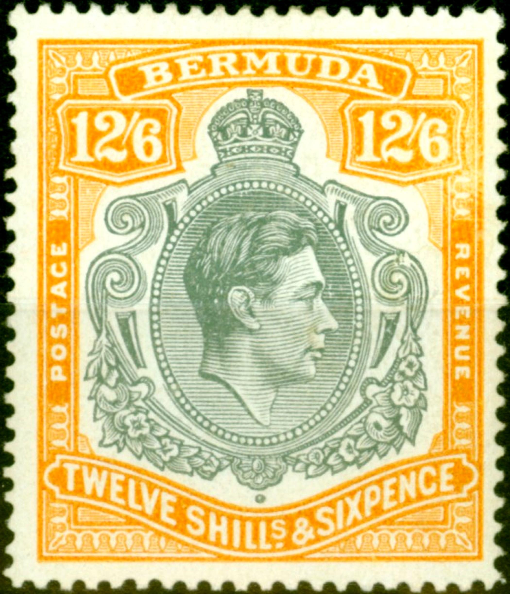 Bermuda 1944 12s6d Grey & Pale Orange SG120ce 'Broken Lower Right Scroll' Fine MM