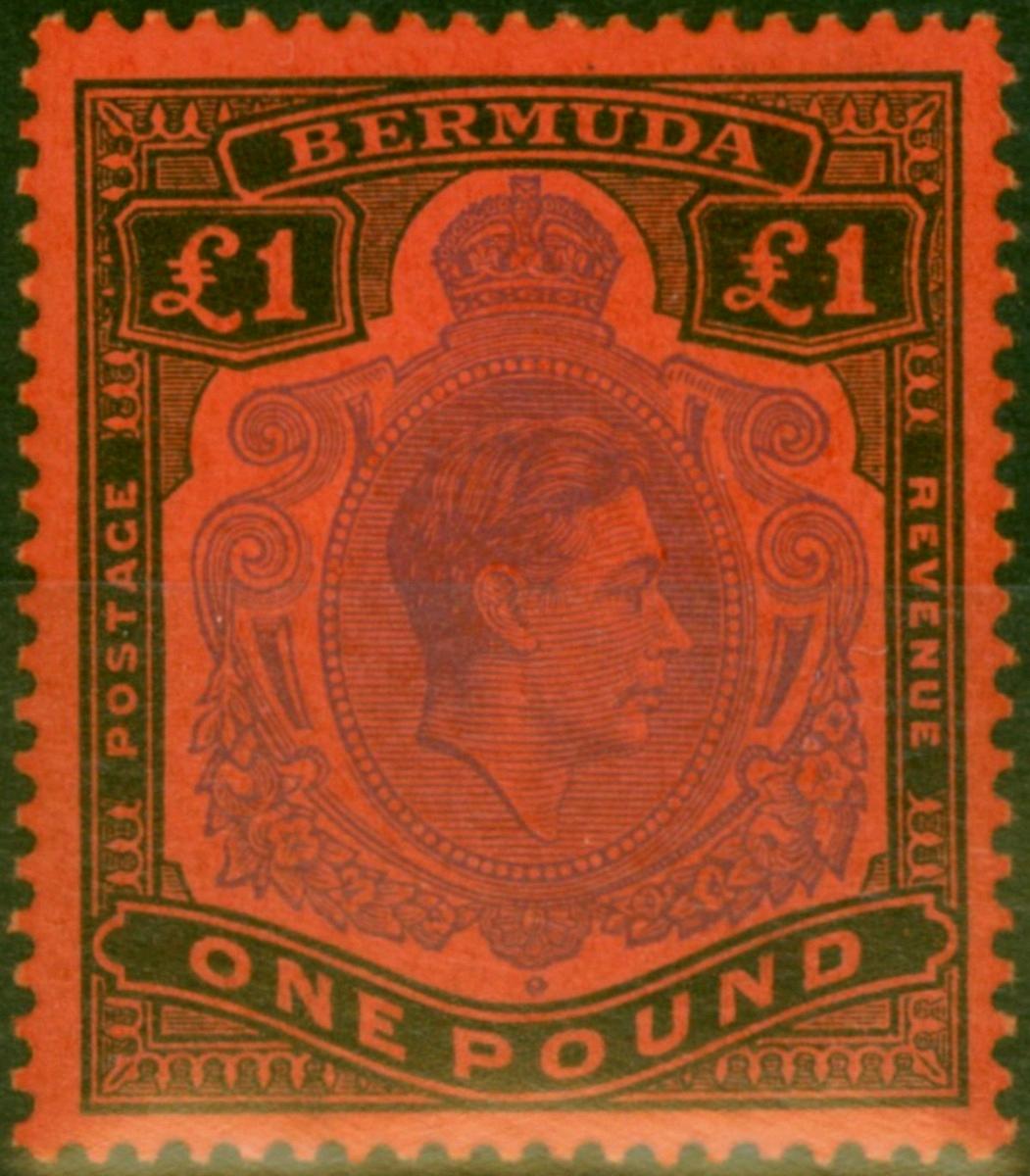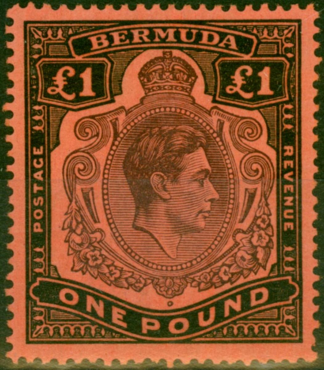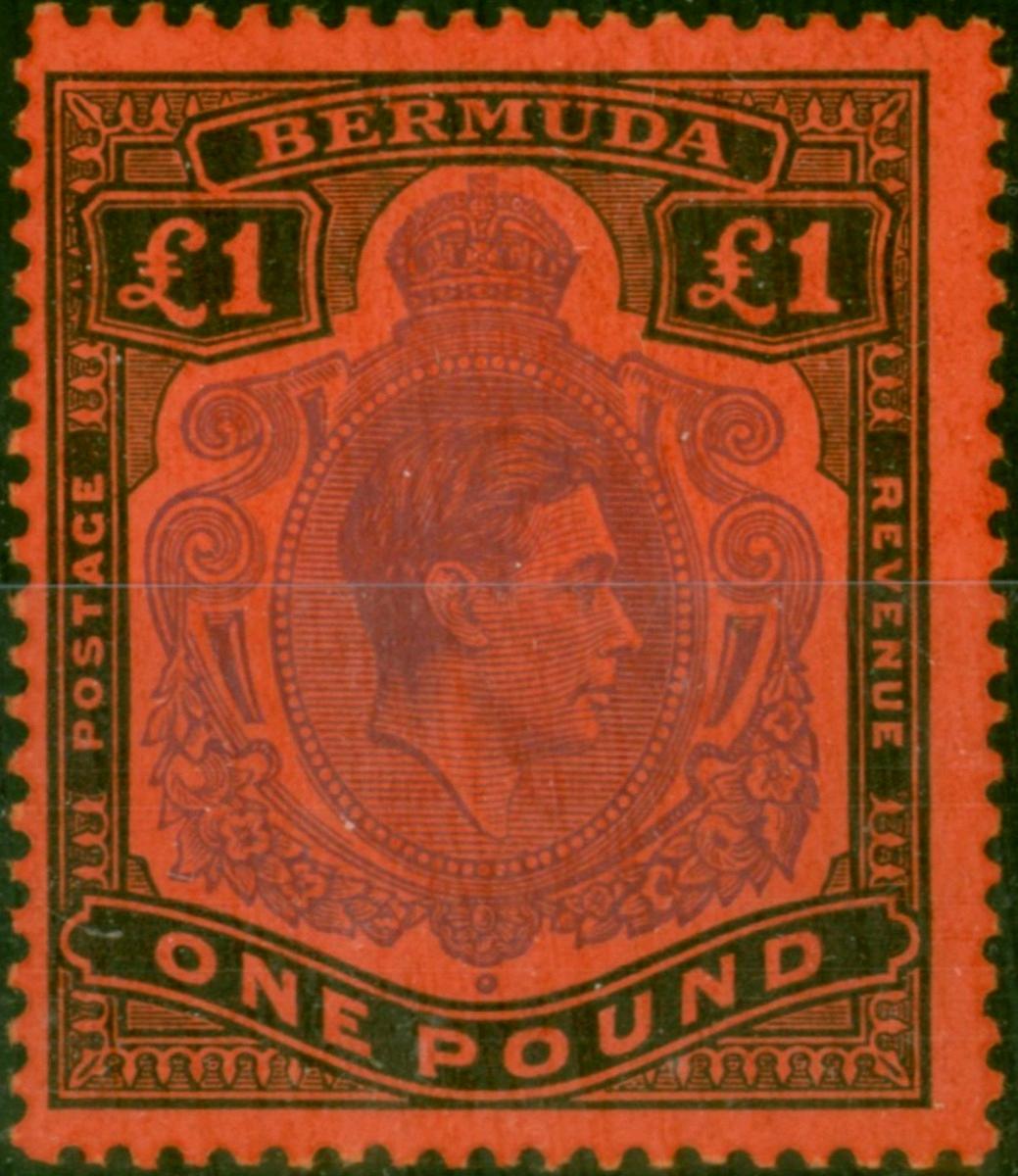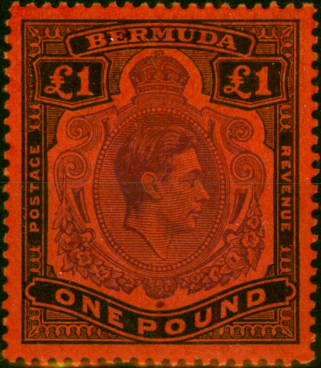 Bermuda 1943 £1 Deep Reddish Purple & Black-Pale Red SG121c V.F MNH (6)