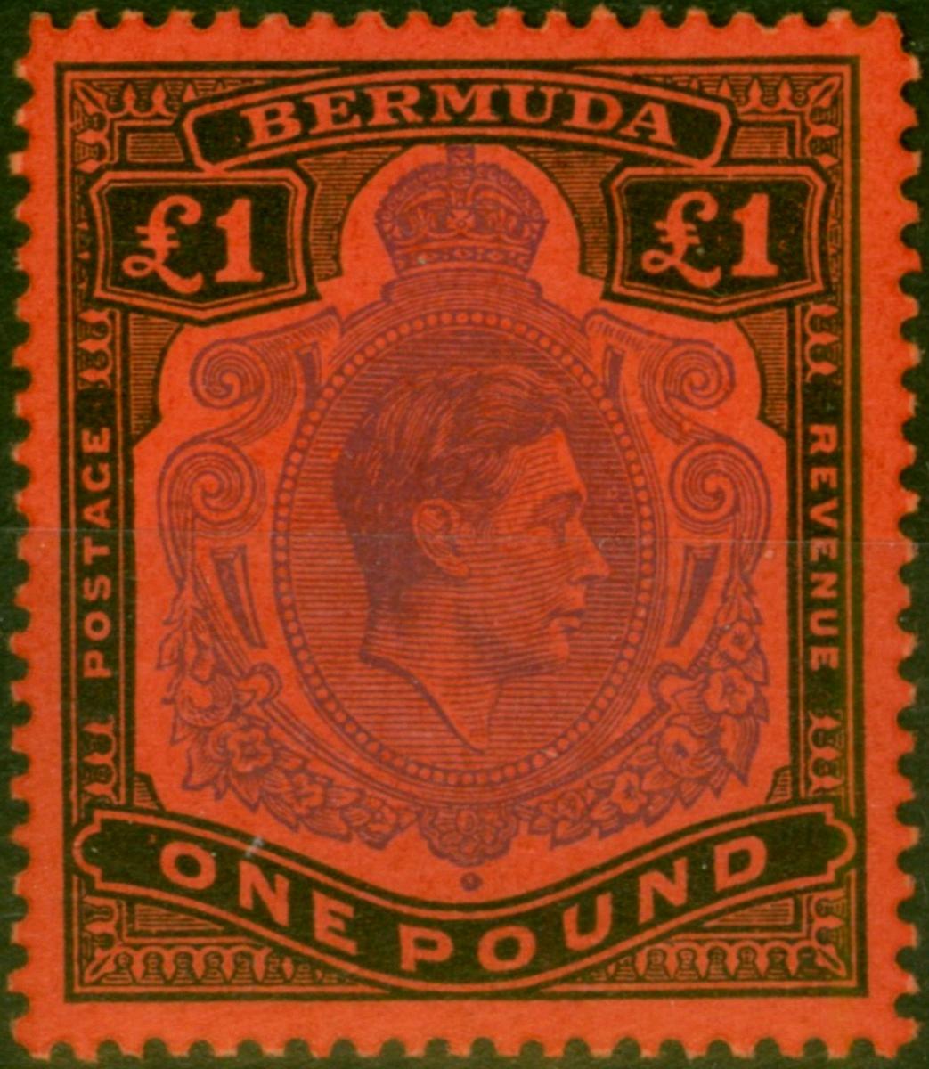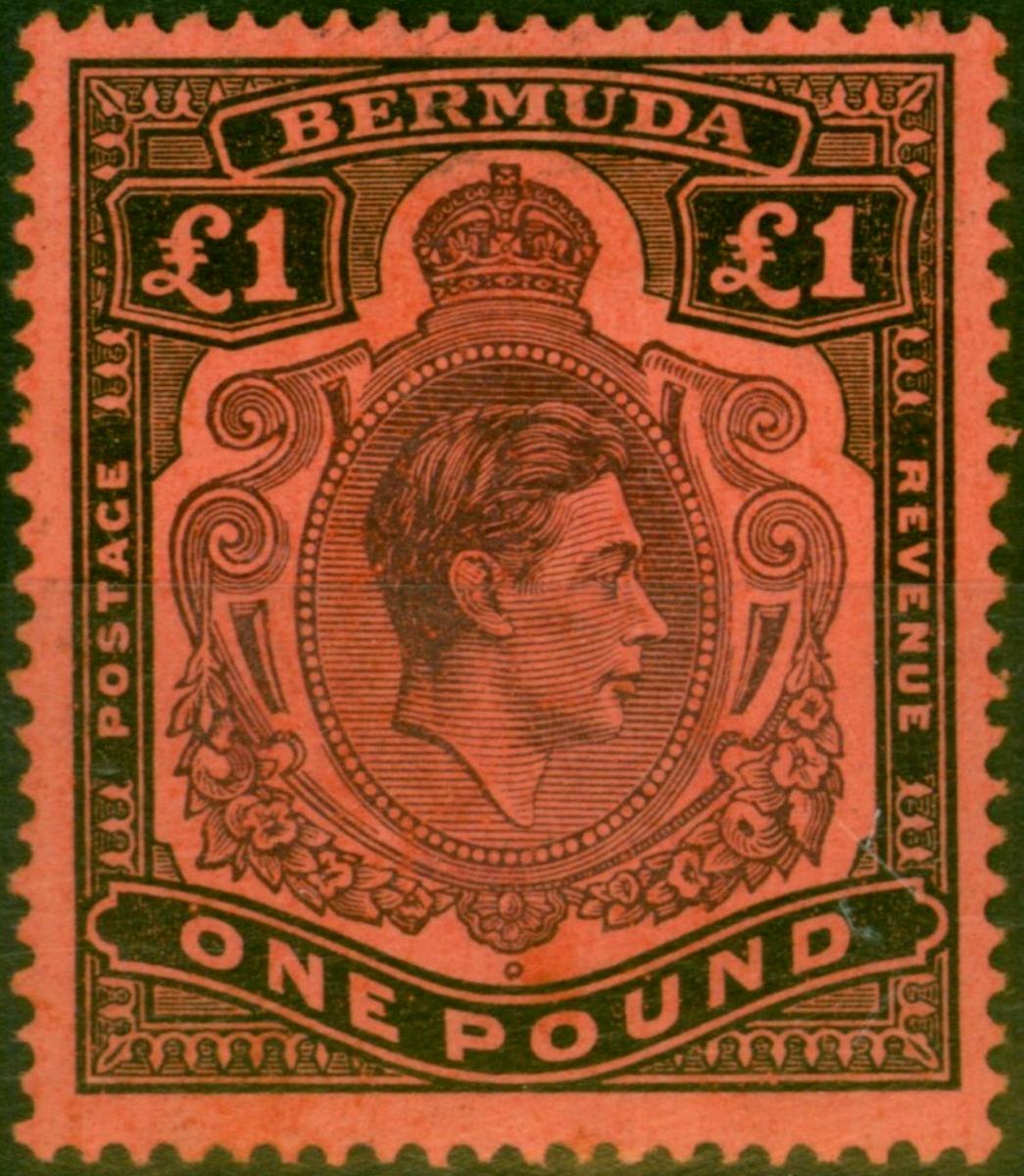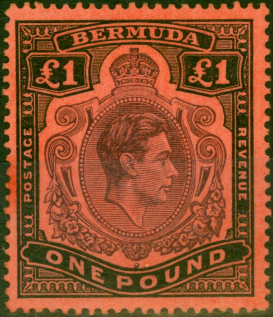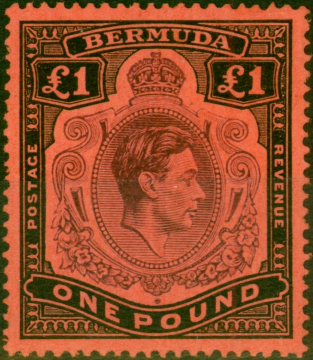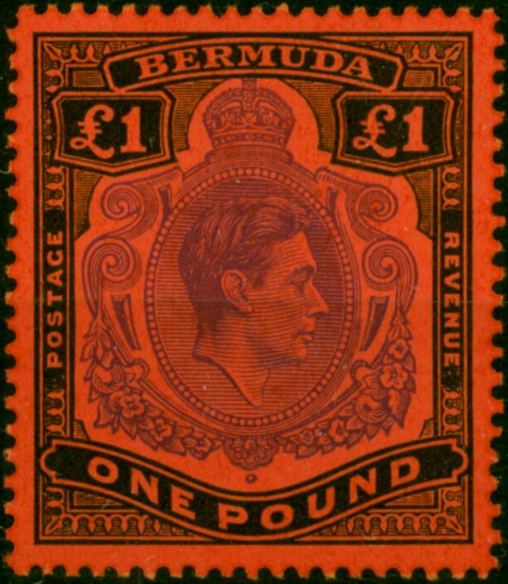 Bermuda 1943 £1 Deep Reddish Purple & Black-Pale Red SG121c V.F MNH (6)