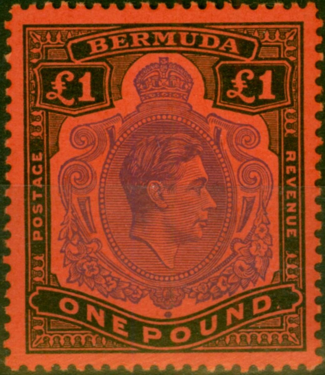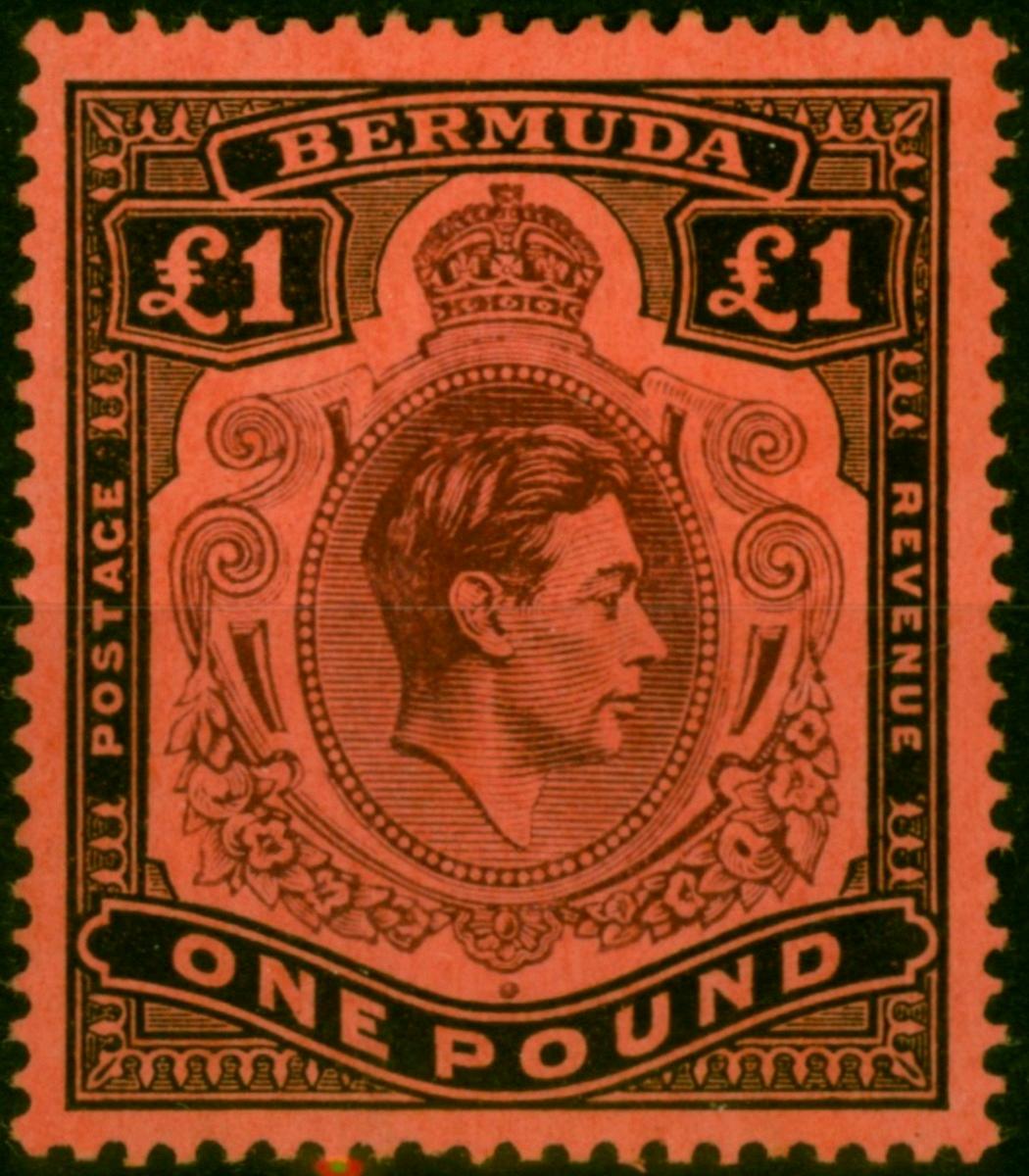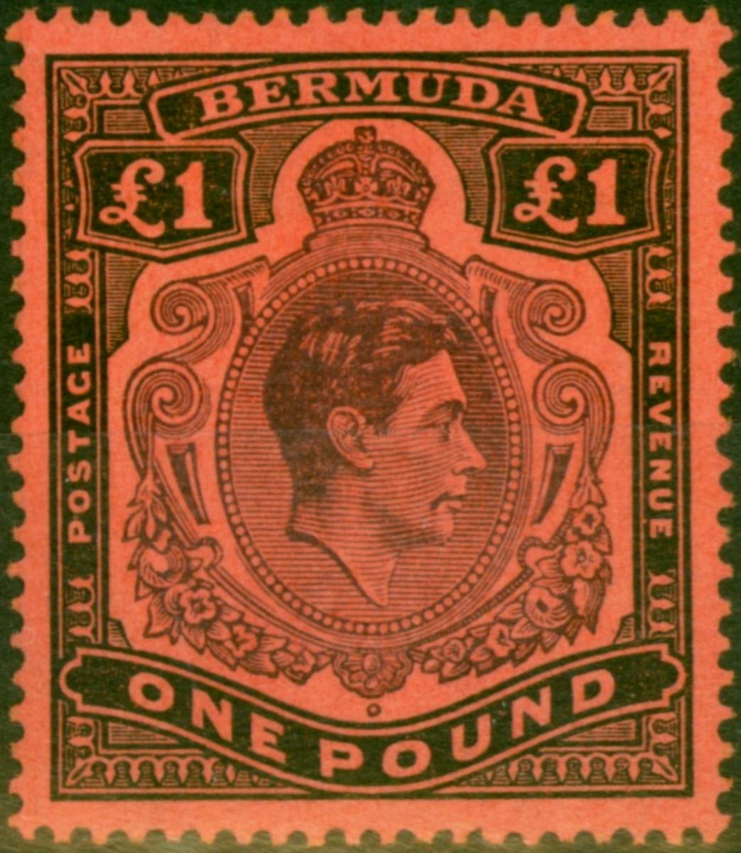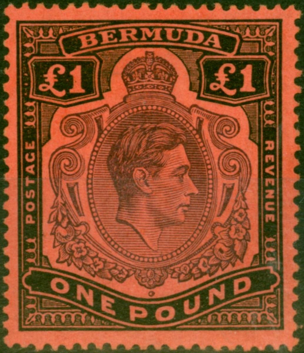 Bermuda 1943 £1 Deep Reddish Purple & Black-Pale Red SG121c V.F MNH (6)