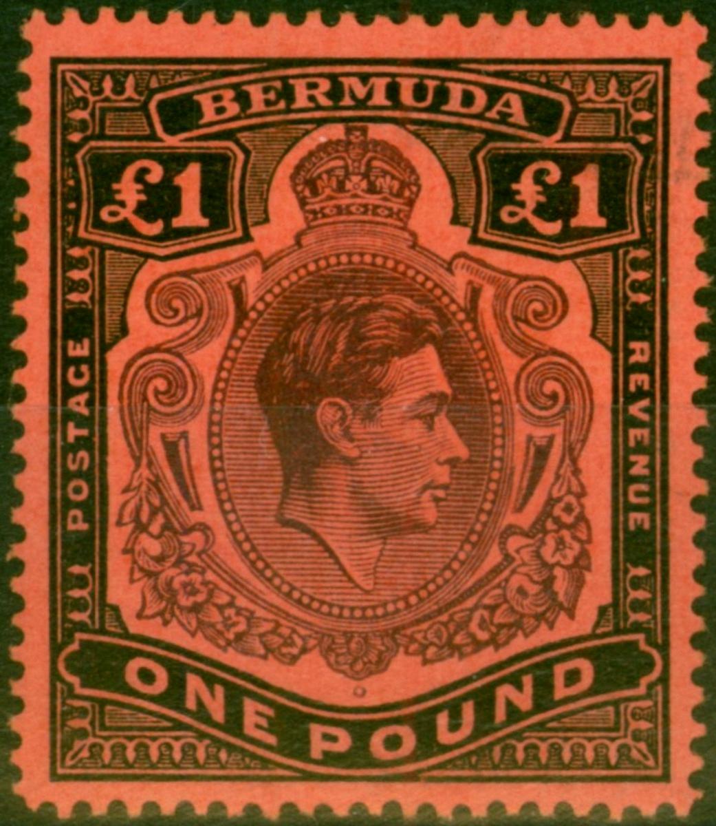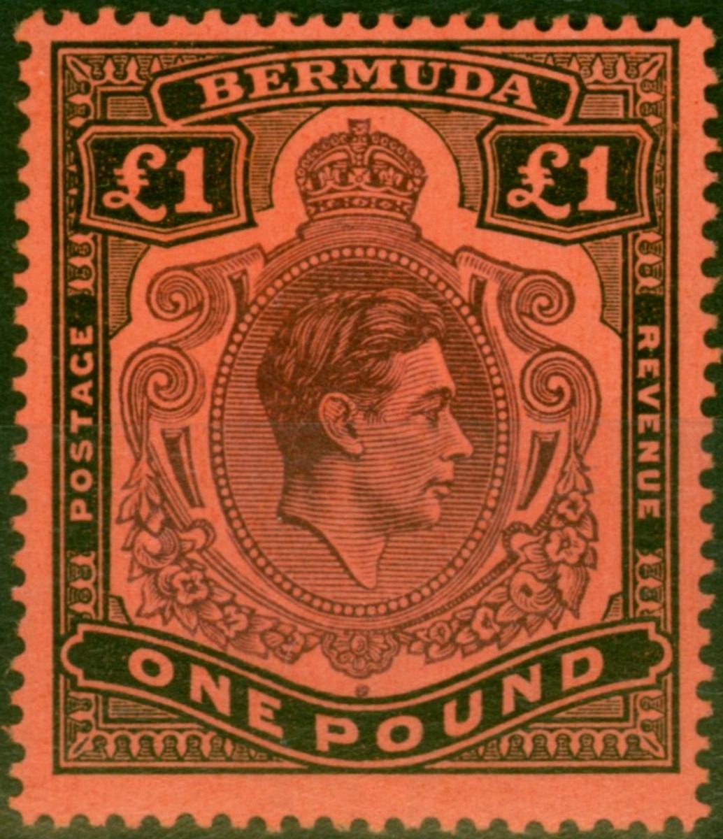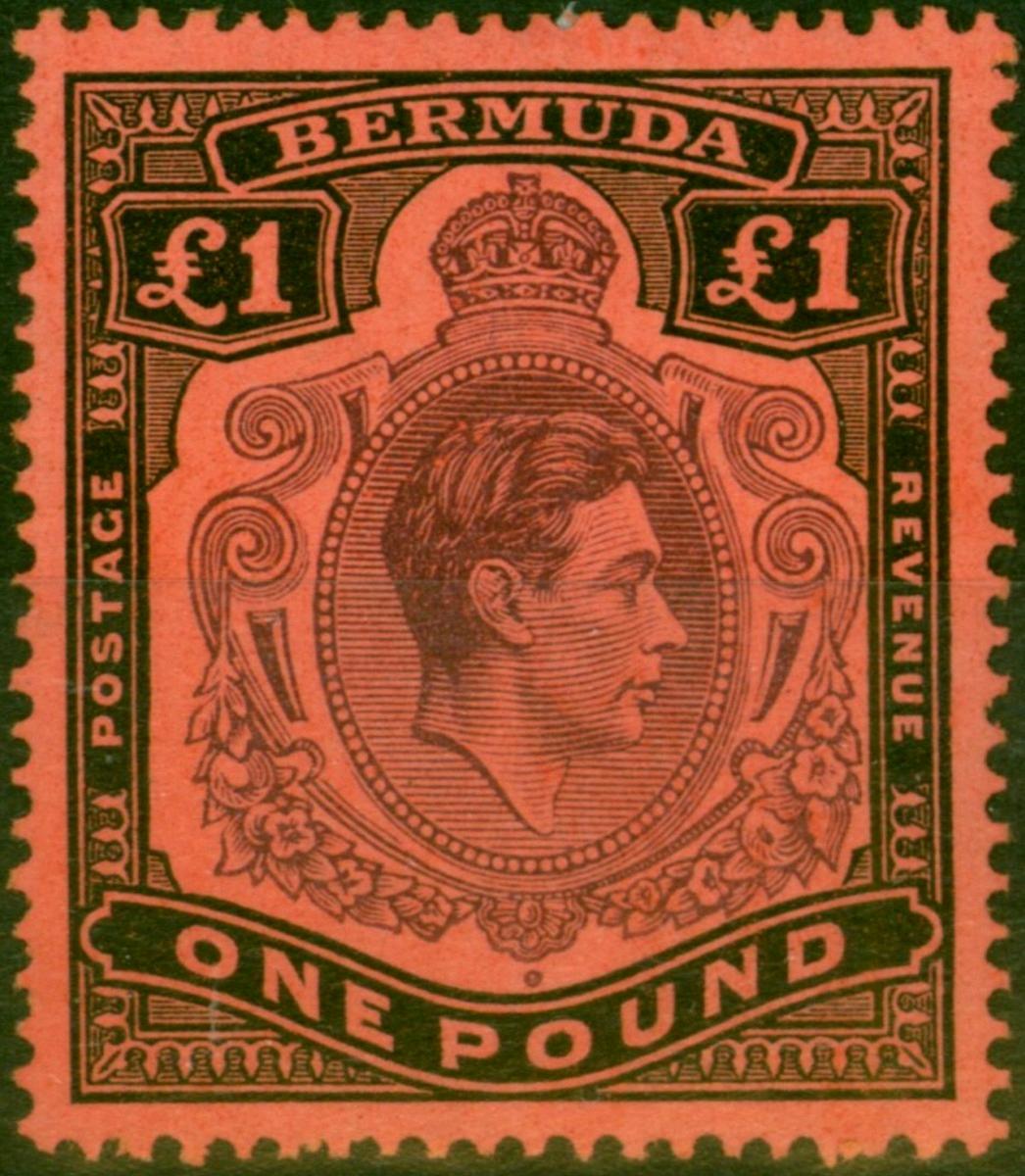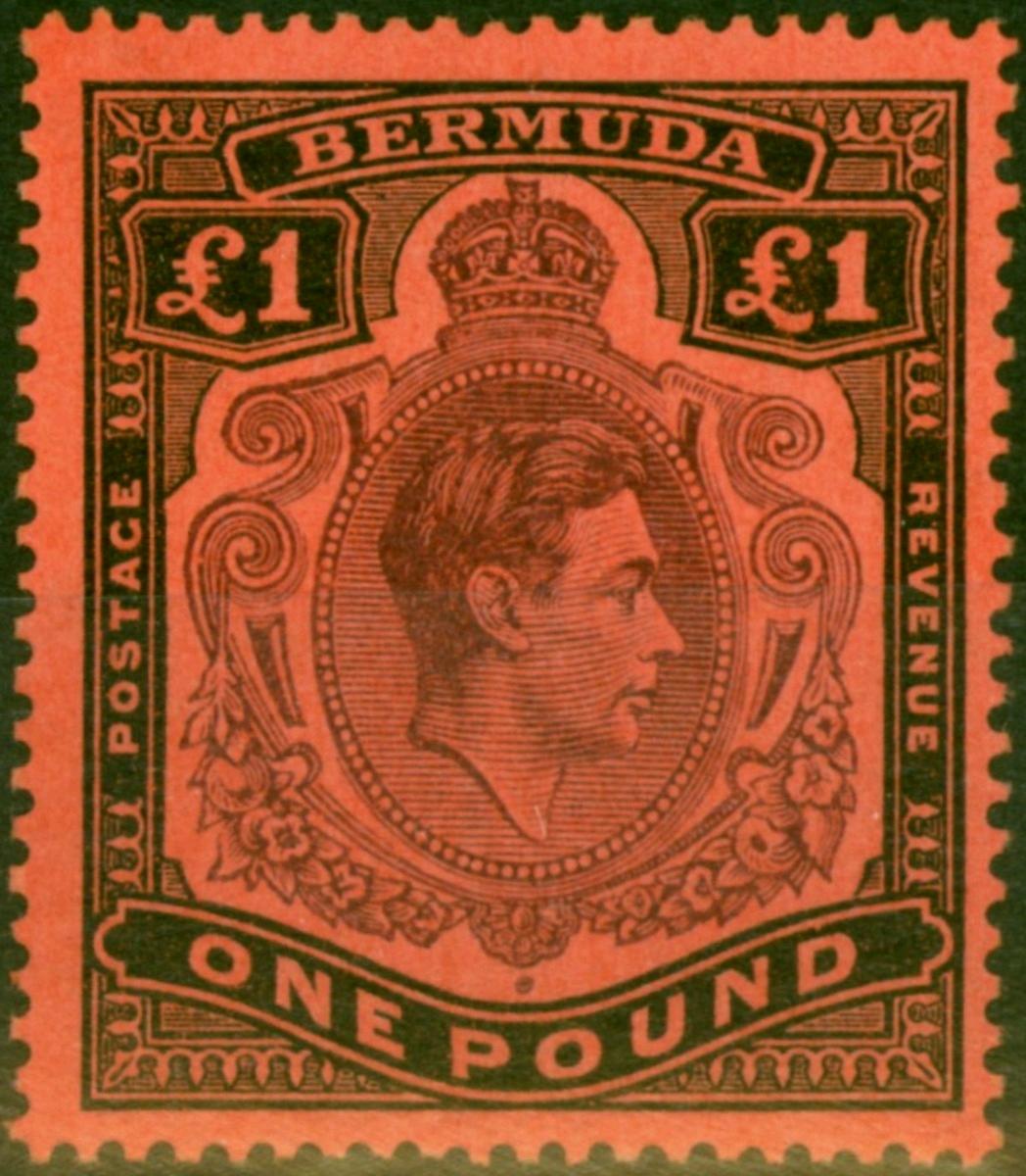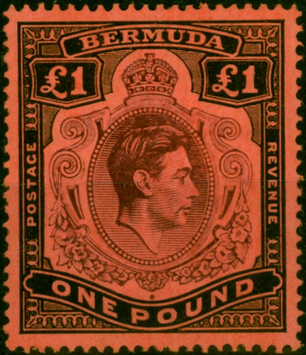 Bermuda 1943 £1 Deep Reddish Purple & Black-Pale Red SG121c V.F MNH (6)