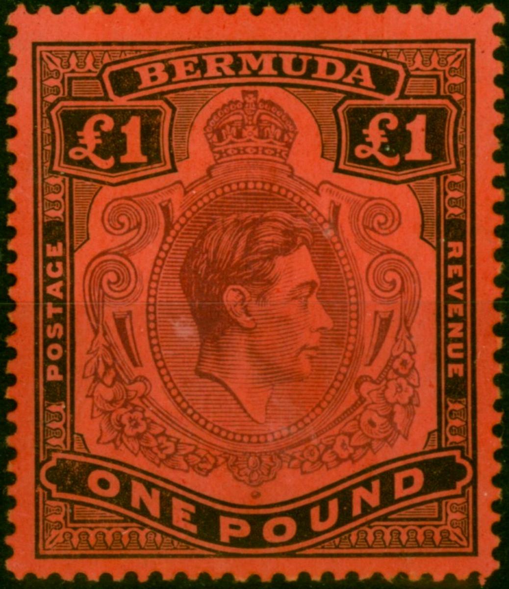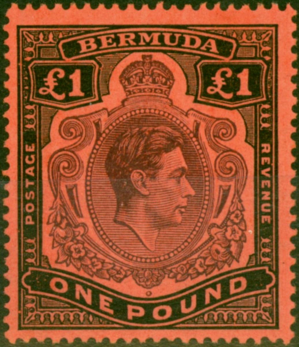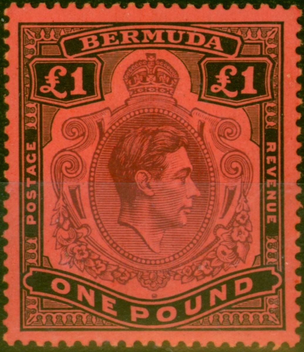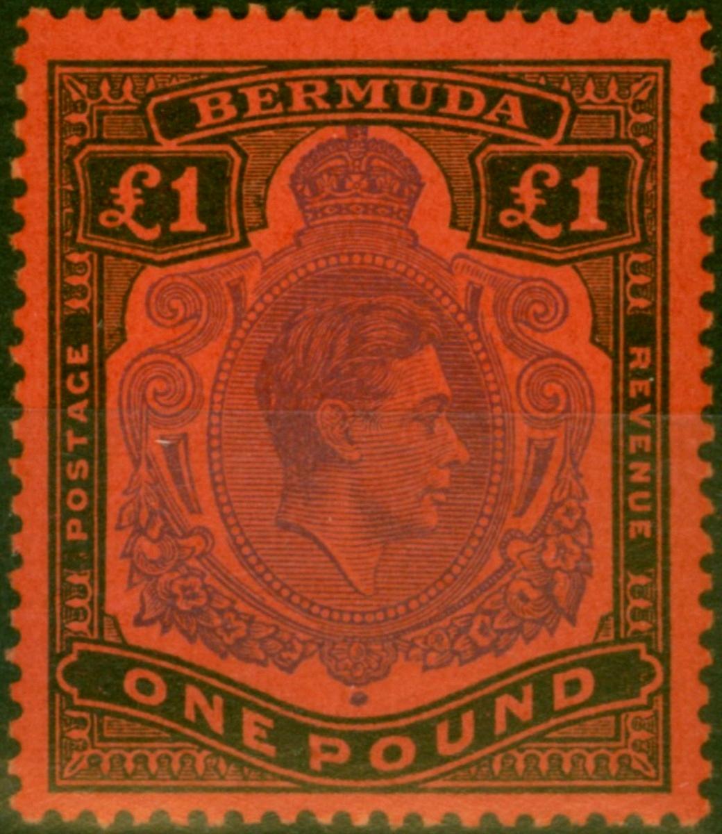Bermuda 1943 £1 Deep Reddish Purple & Black-Pale Red SG121c V.F MNH (6)