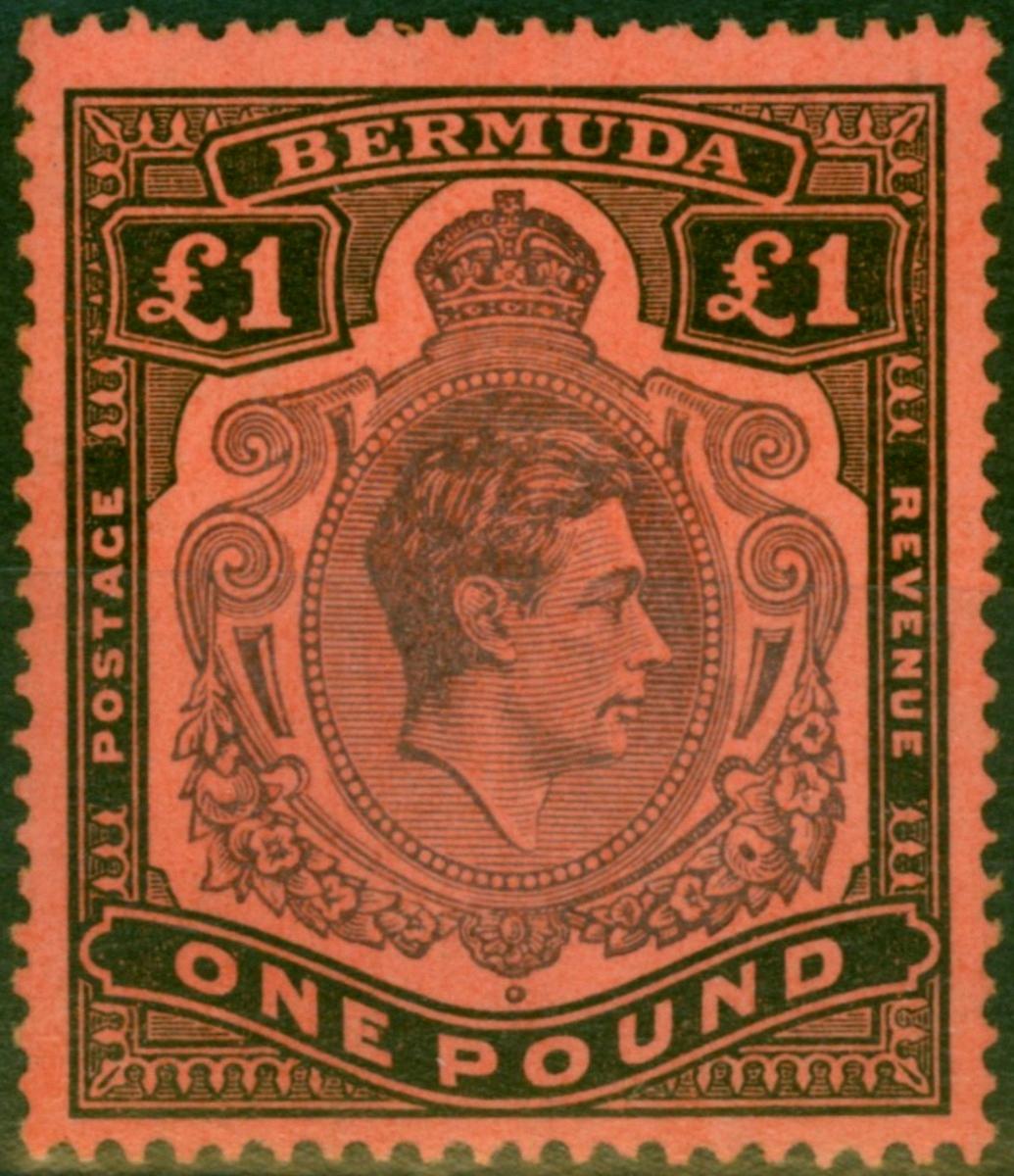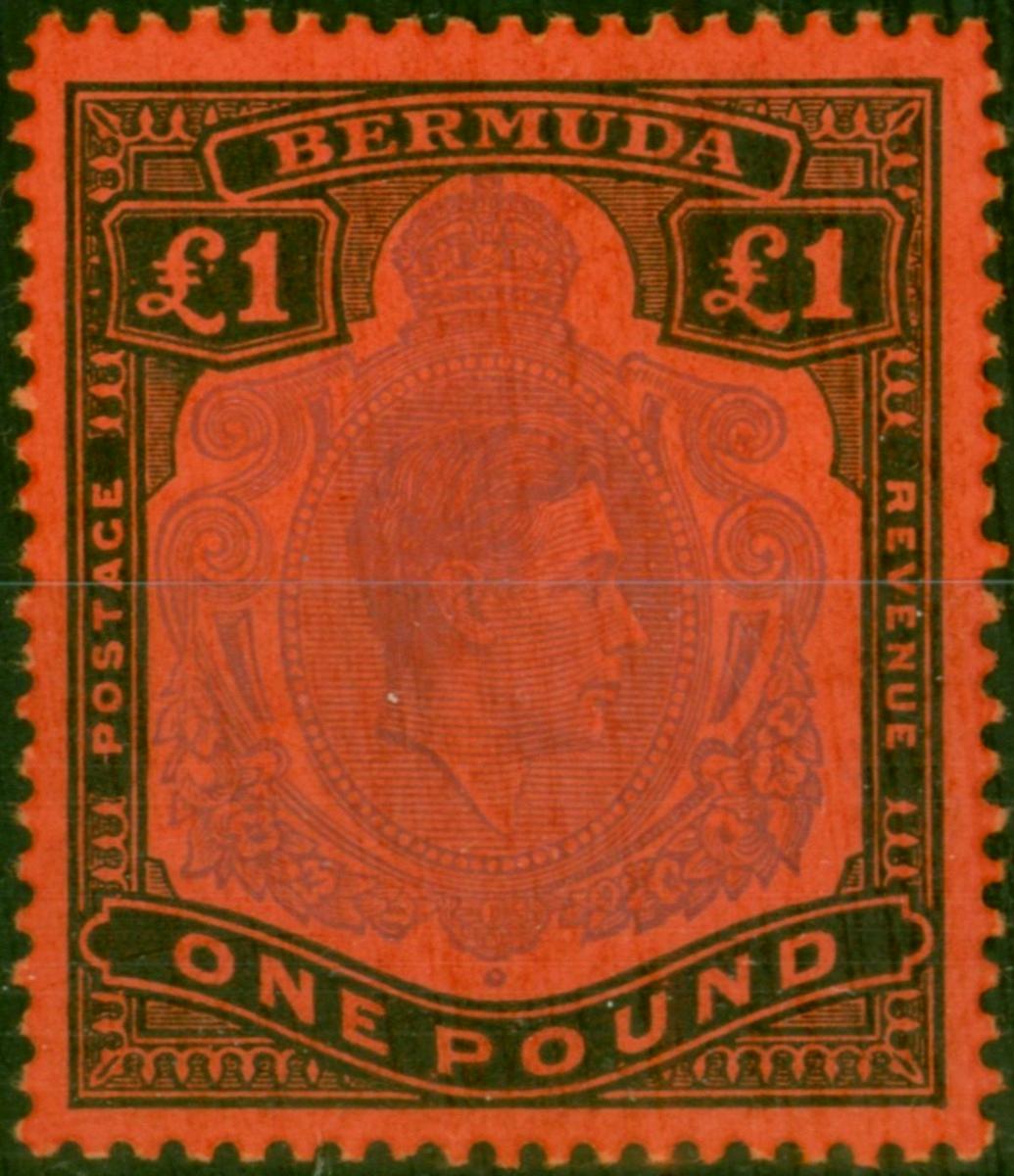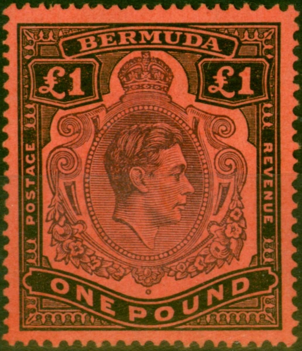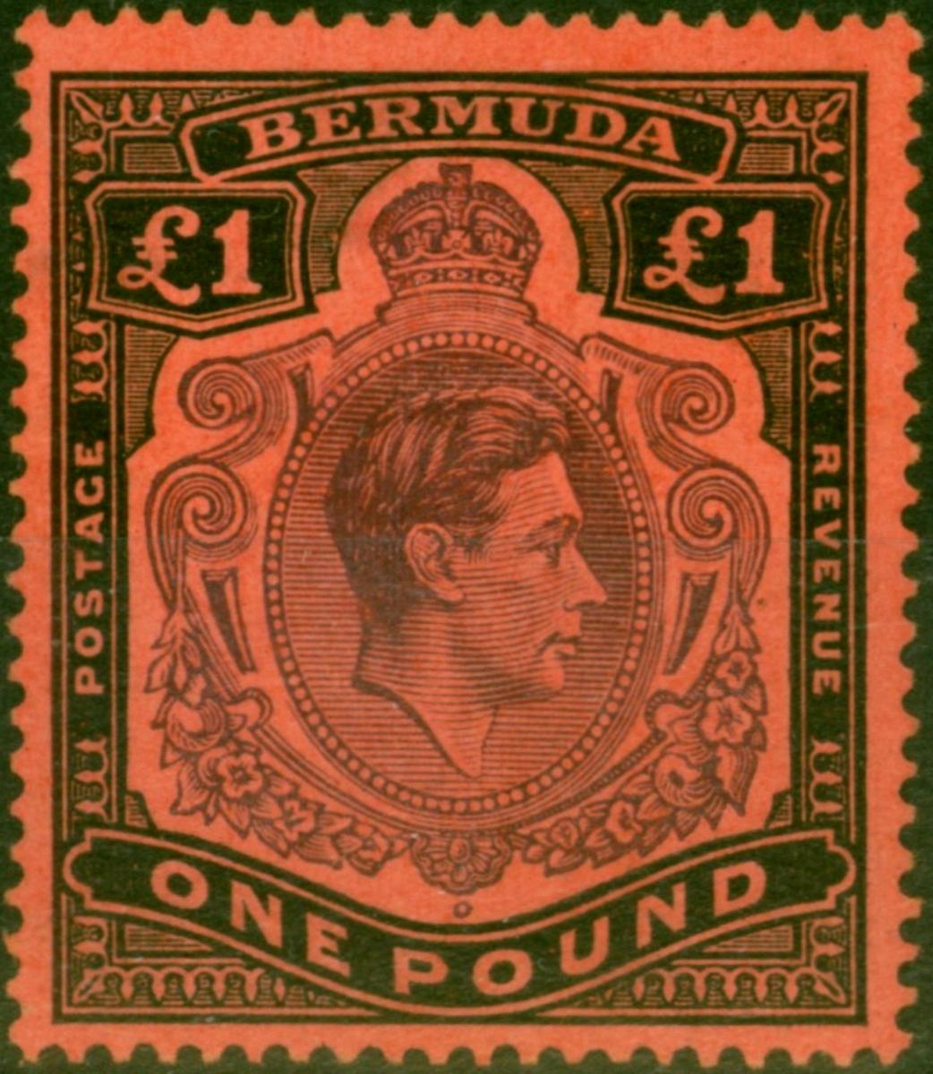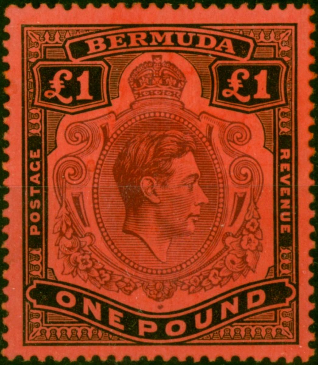 Bermuda 1943 £1 Deep Reddish Purple & Black-Pale Red SG121c V.F MNH (6)