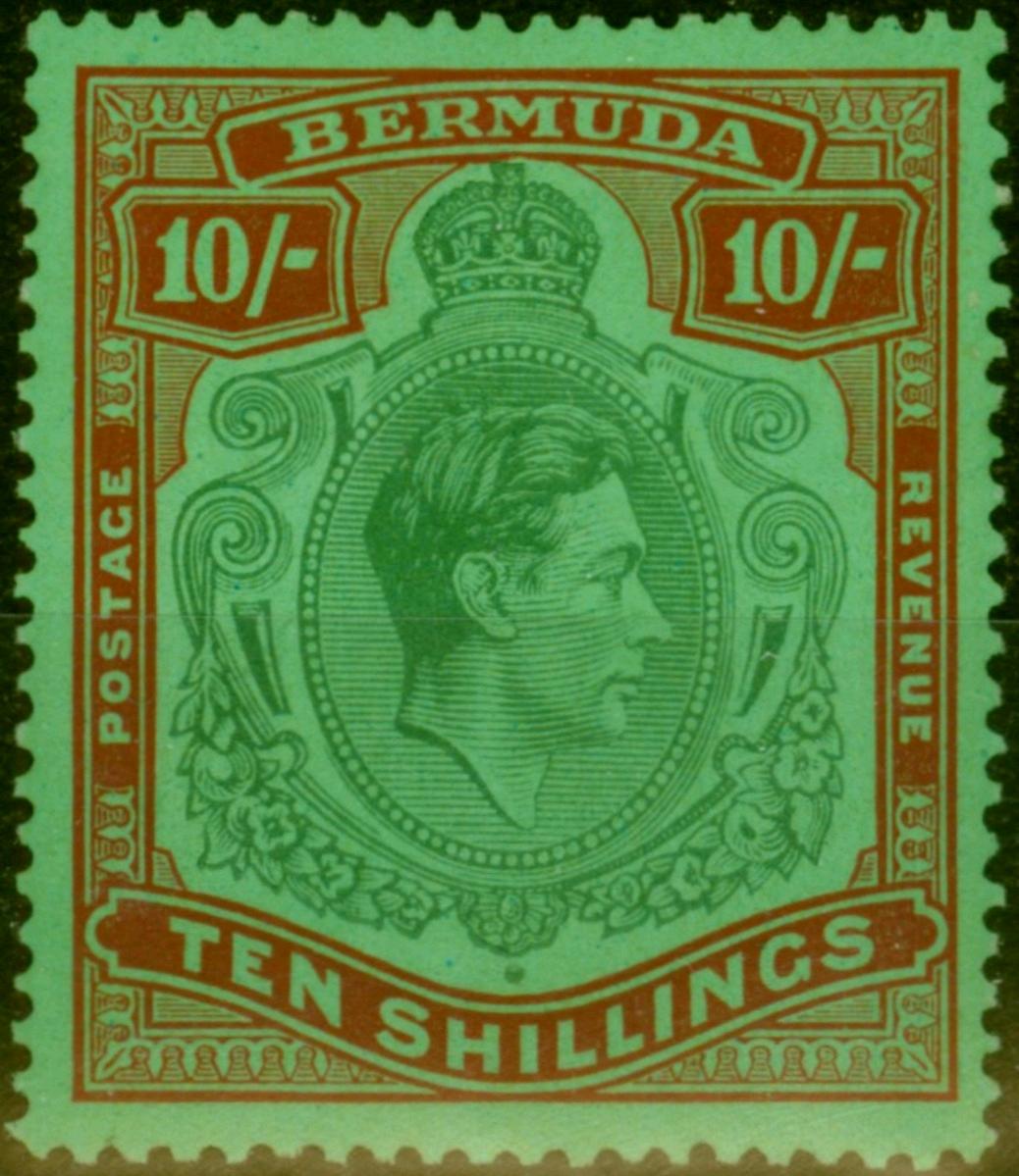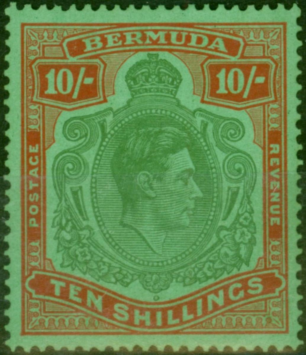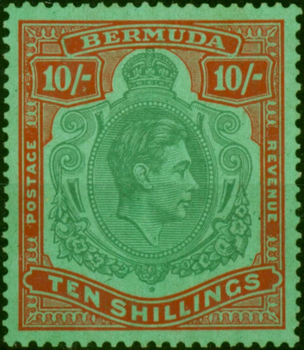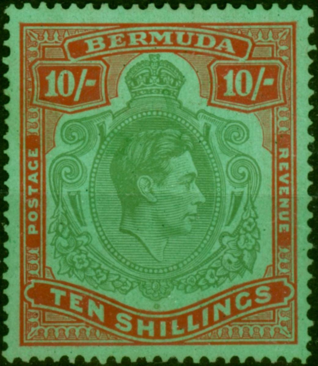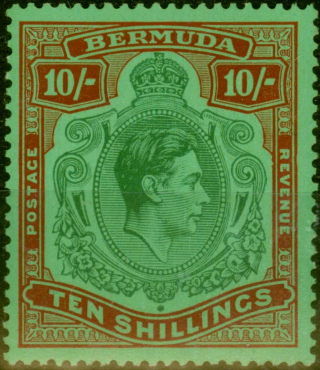 Bermuda 1938 10s Green & Deep Lake-Emerald SG119 Fine LMM