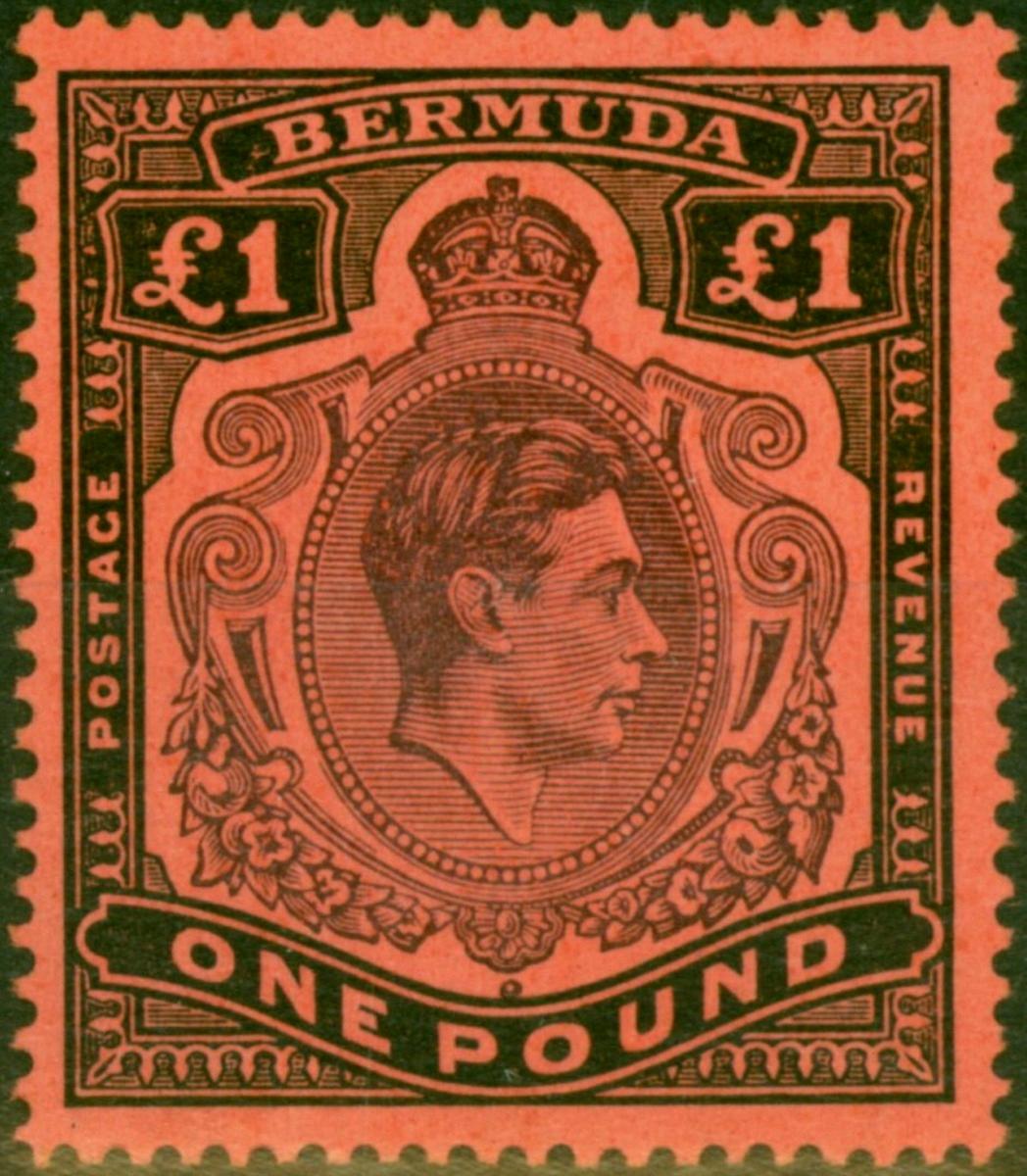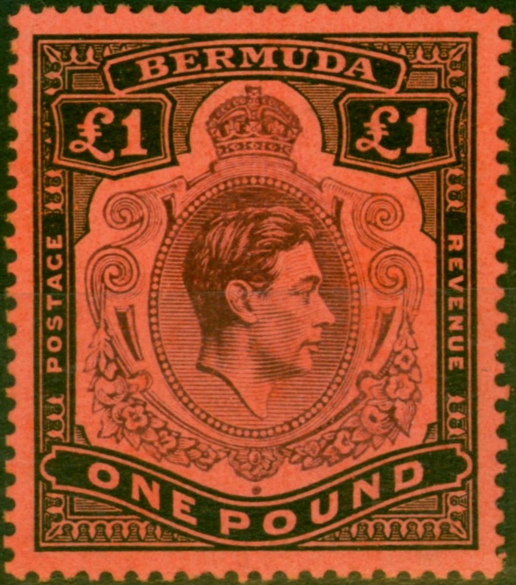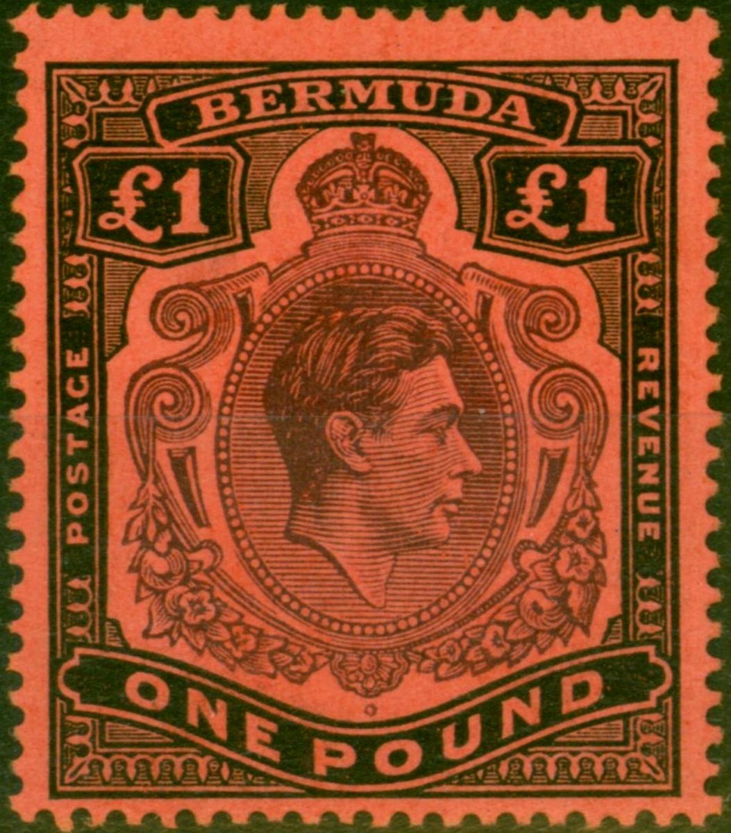 Bermuda 1943 £1 Deep Reddish Purple & Black-Pale Red SG121c V.F MNH (7)